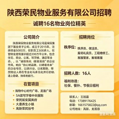陕西荣民物业服务有限公司招聘:秩序员、保洁员、案场礼宾员、工程维修工、客服管家、案场客服