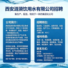 西安涟漪饮用水有限公司招聘:配送员、门店店长、业务代表、化验员、生产工人、订单座席员、投诉专员、航空坐席员