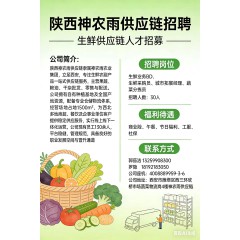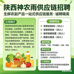 陕西神农雨供应链招聘:生鲜业务BD、生鲜采购员、城市拓展经理、蔬菜分拣员