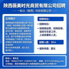 陕西薇美时光商贸有限公司招聘:短视频运营、招商经理、宝妈可在家工作、上班族兼职人员