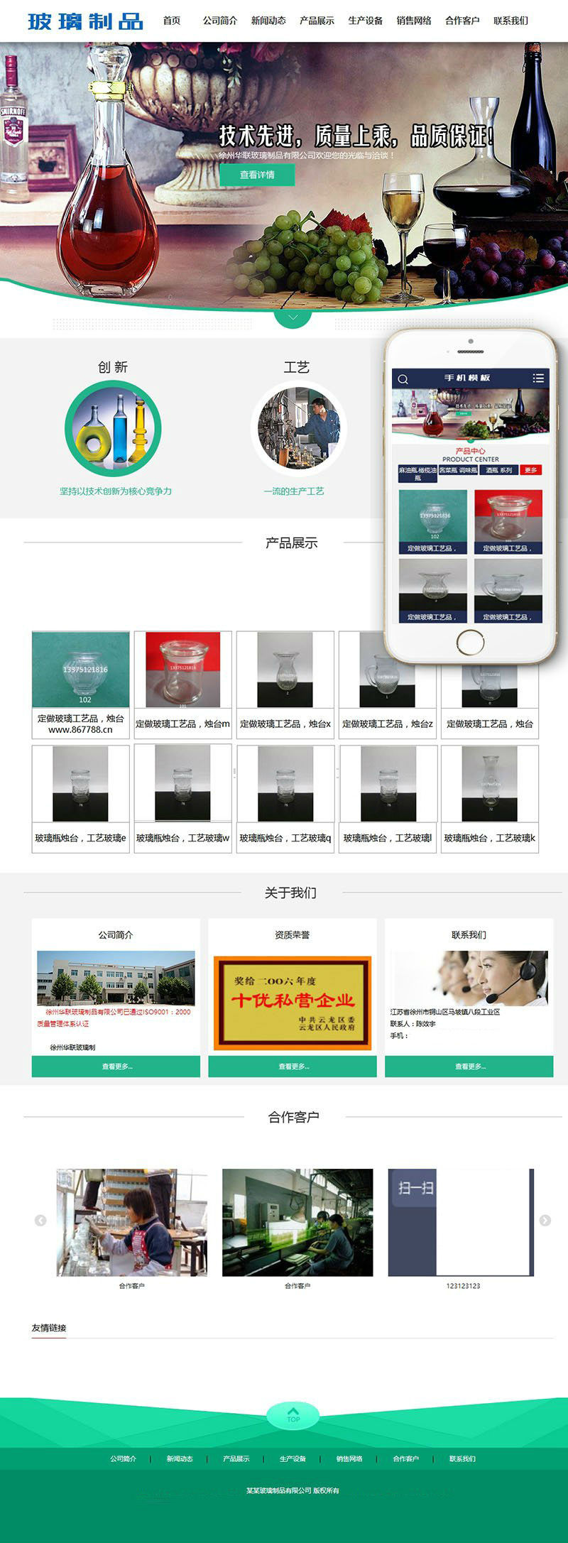玻璃制品类网站(带手机端)