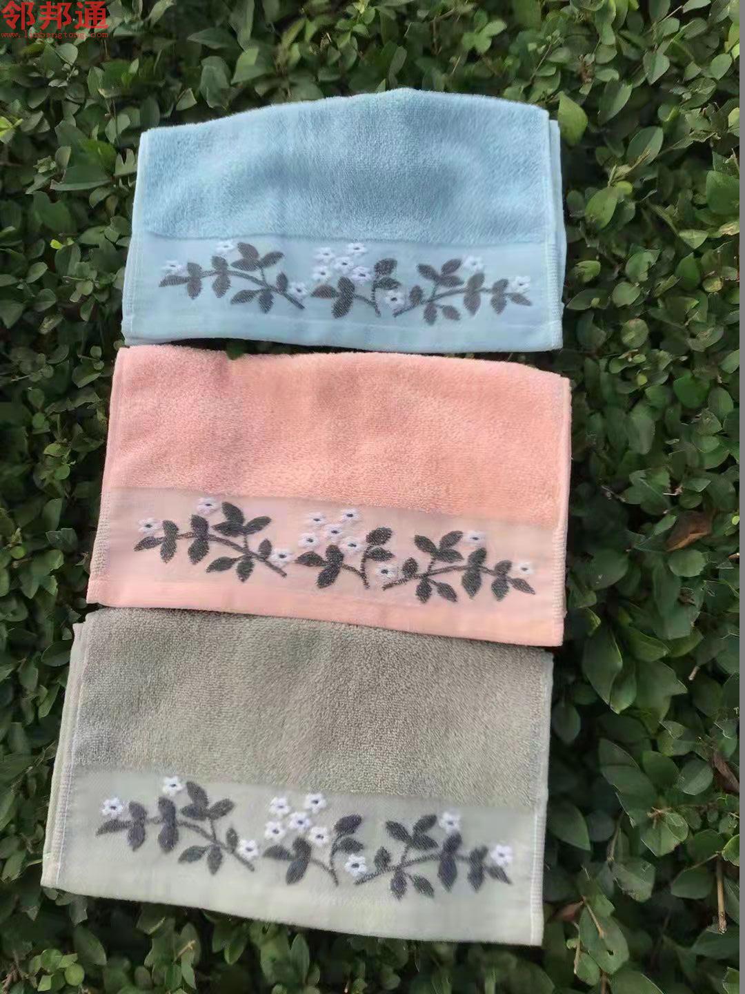 商品名称:14支弱捻纱毛巾 尺寸34cm*74cm 重量110g房子.素运动.三角花.绿茶.树叶花.素字母.字母衣服.三段条等图案毛巾