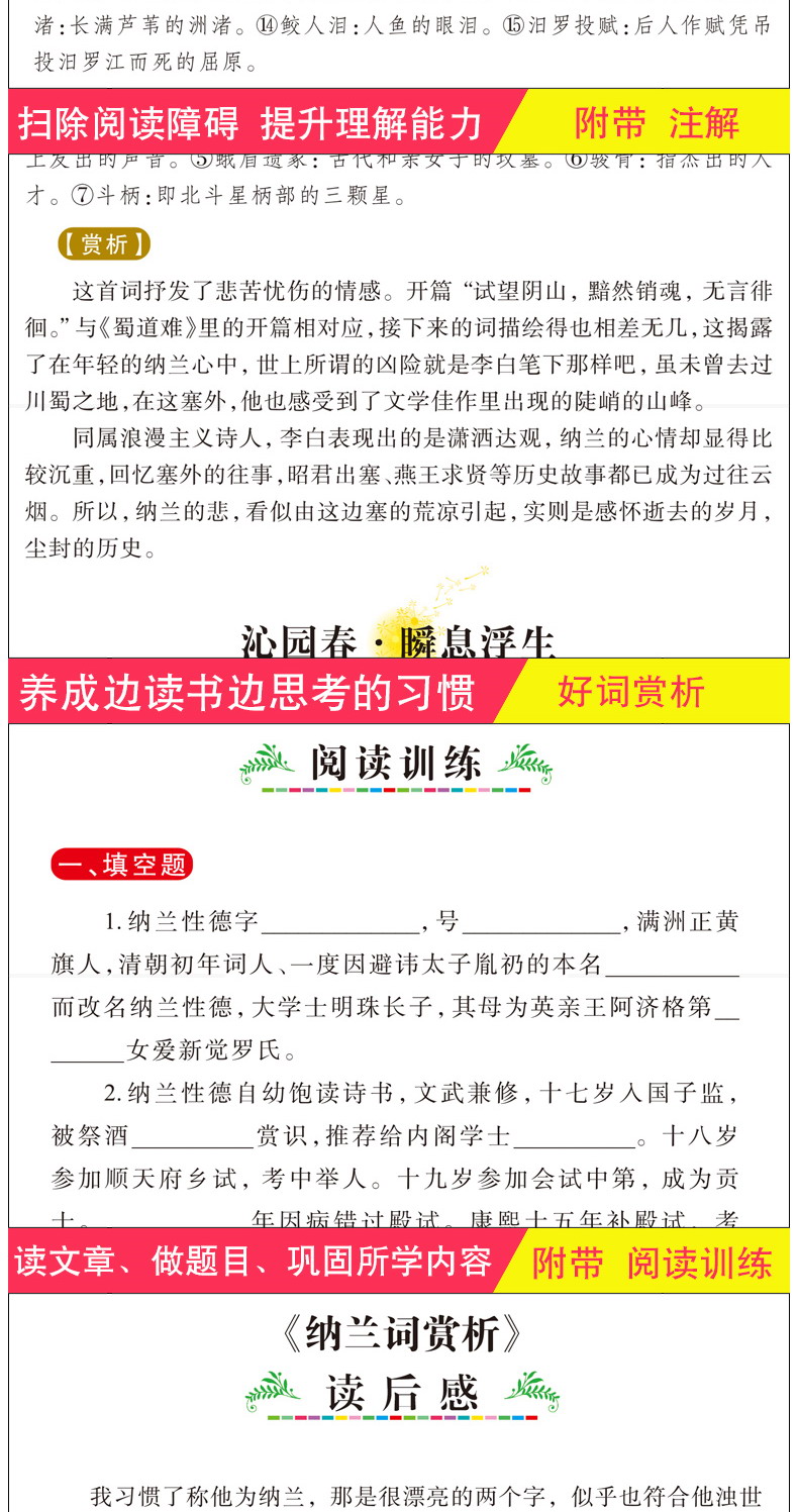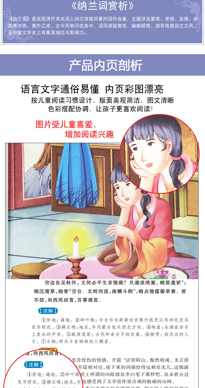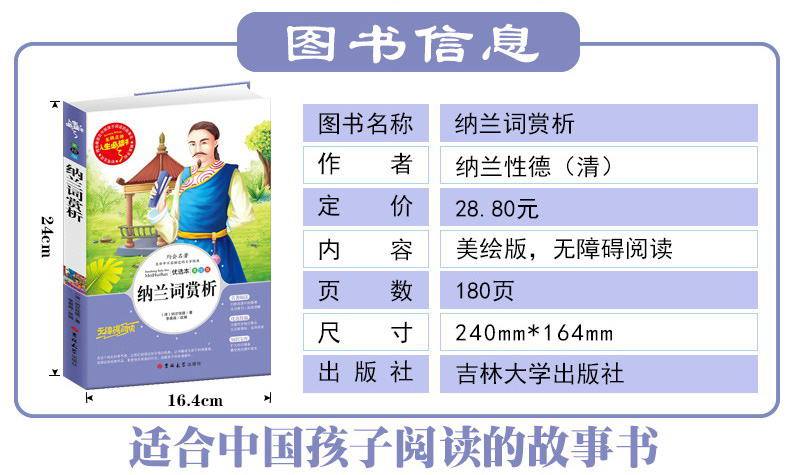 商品名称:人生必读书--纳兰词赏析 青少年版儿童读物中国古典古诗词注解赏析图书三四五六七年级课外阅读书籍 吉林大学出版社