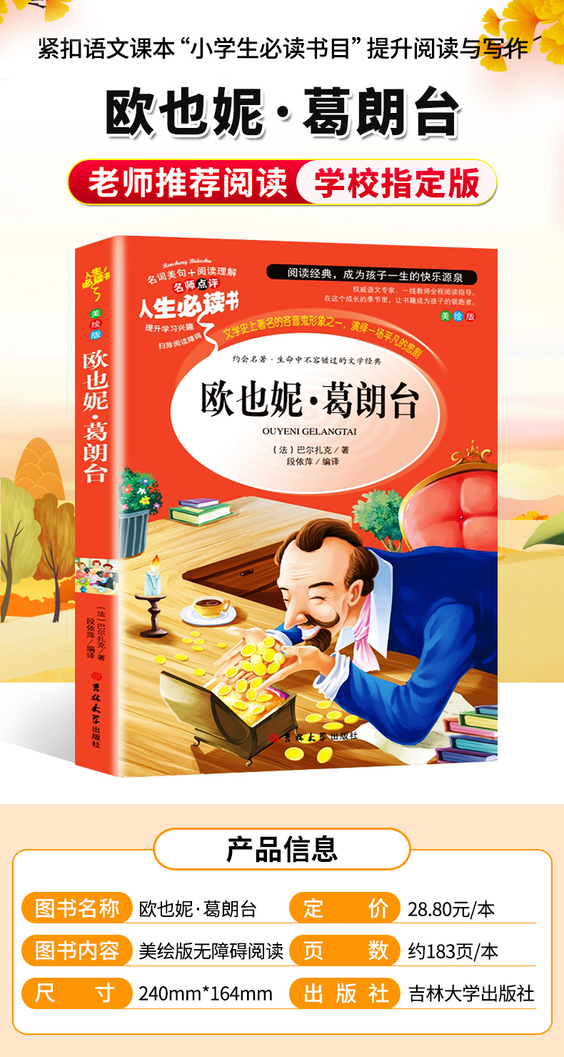 商品名称:人生必读书--欧也妮·葛朗台 小学生三年级四年级五六年级课外书籍青少年无障碍阅读名著世界经典儿童文学奖 吉林大学出版社