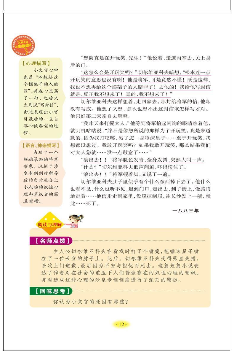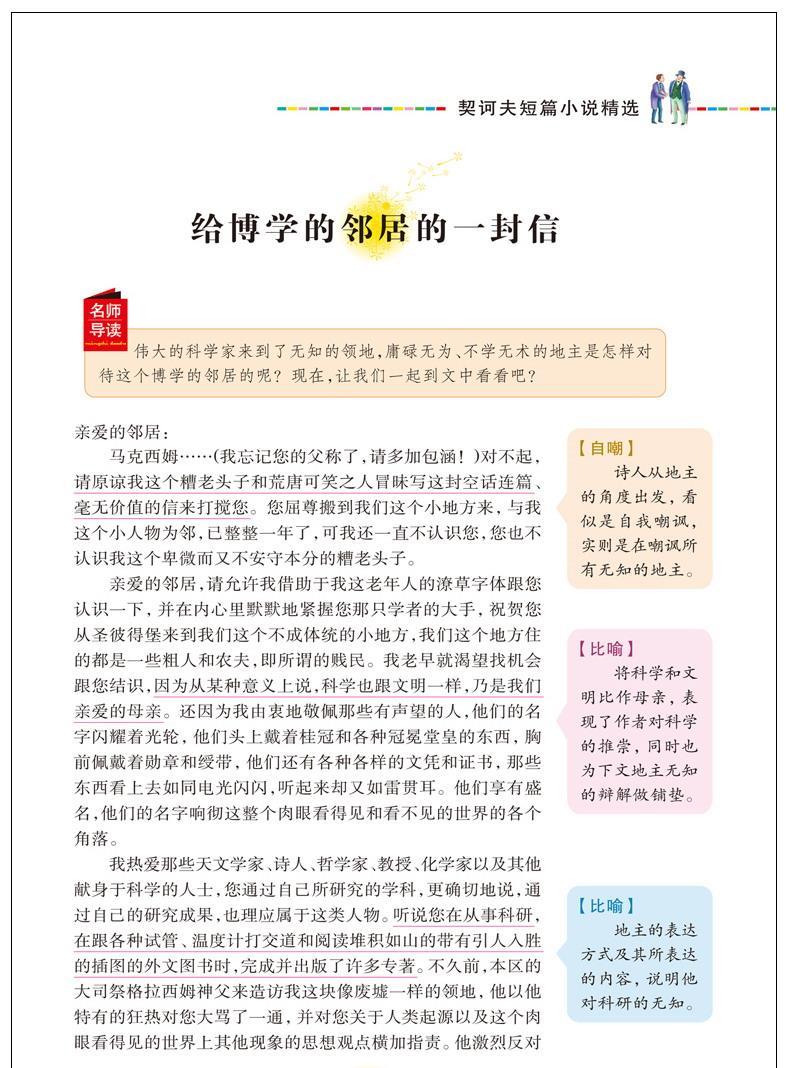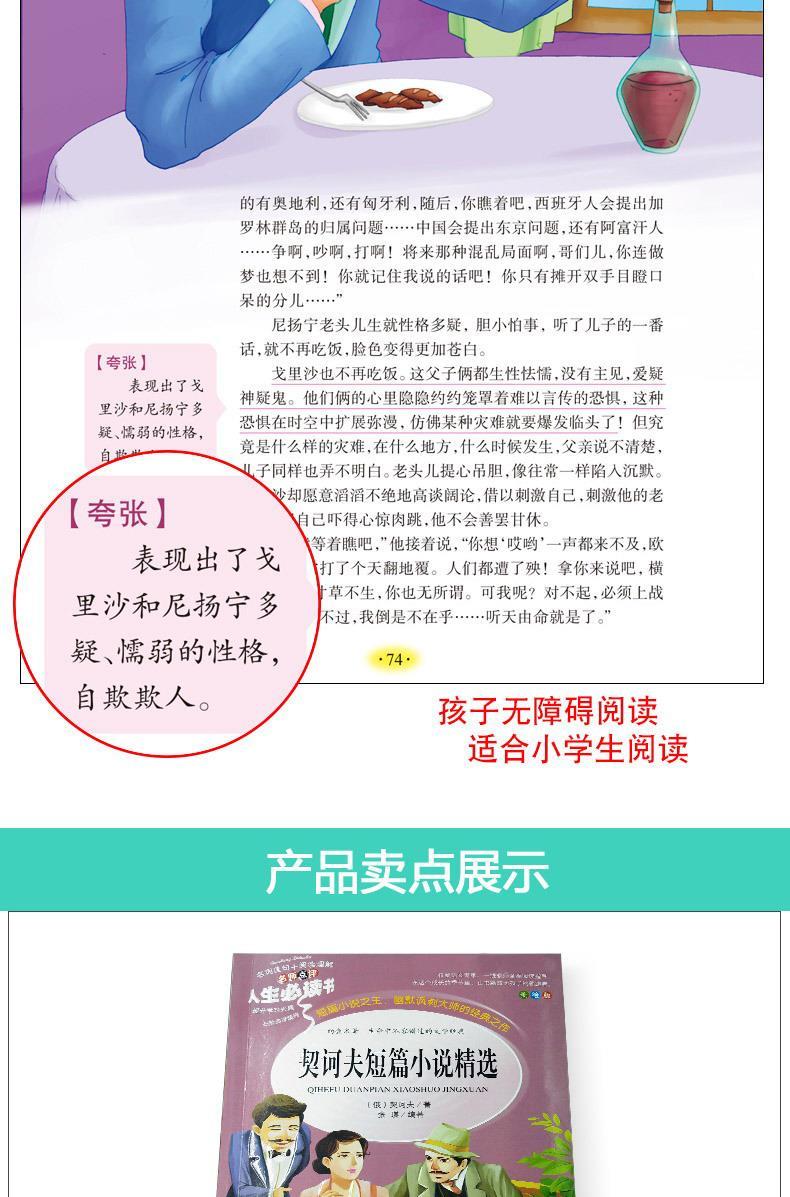 商品名称:人生必读书--契诃夫短篇小说精选 小学生青少年三四五六年级经典名著文学彩图美绘插画版名师导读带批注读后感 山东美术出版社