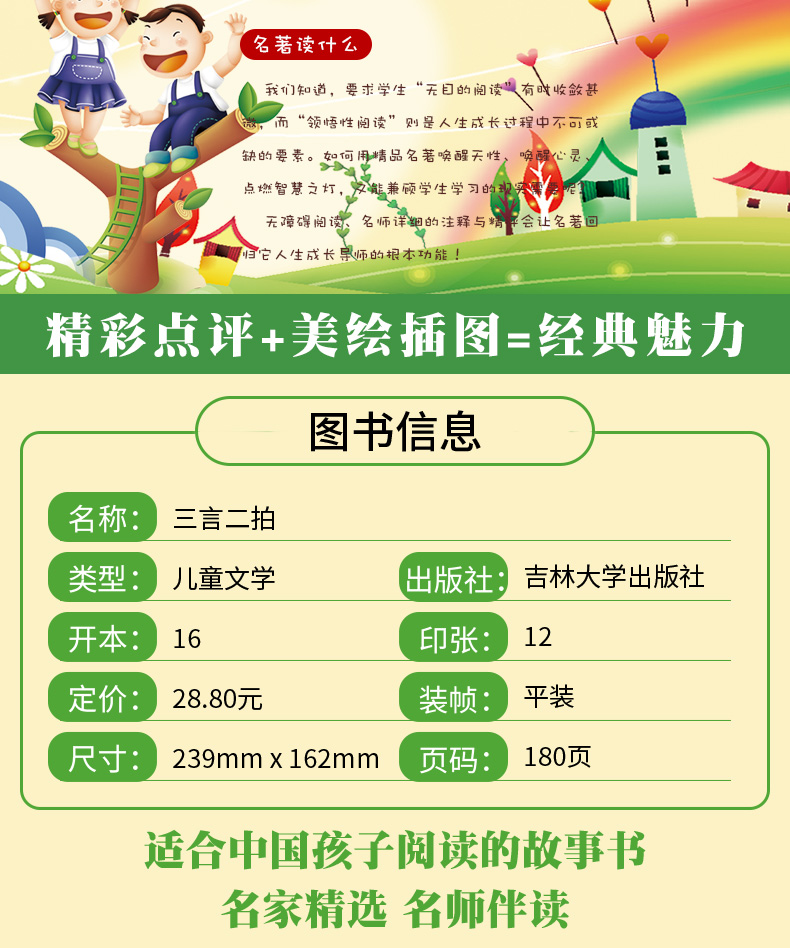 商品名称:人生必读书--三言两拍 小学生青少年版课外阅读 三四五六年级课外阅读书籍 吉林大学出版社