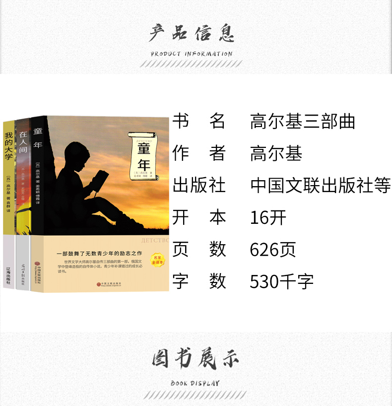 商品名称:人生必读书--童年.在人间.我的大学 青少年阅读人教版完整版吉林出版社