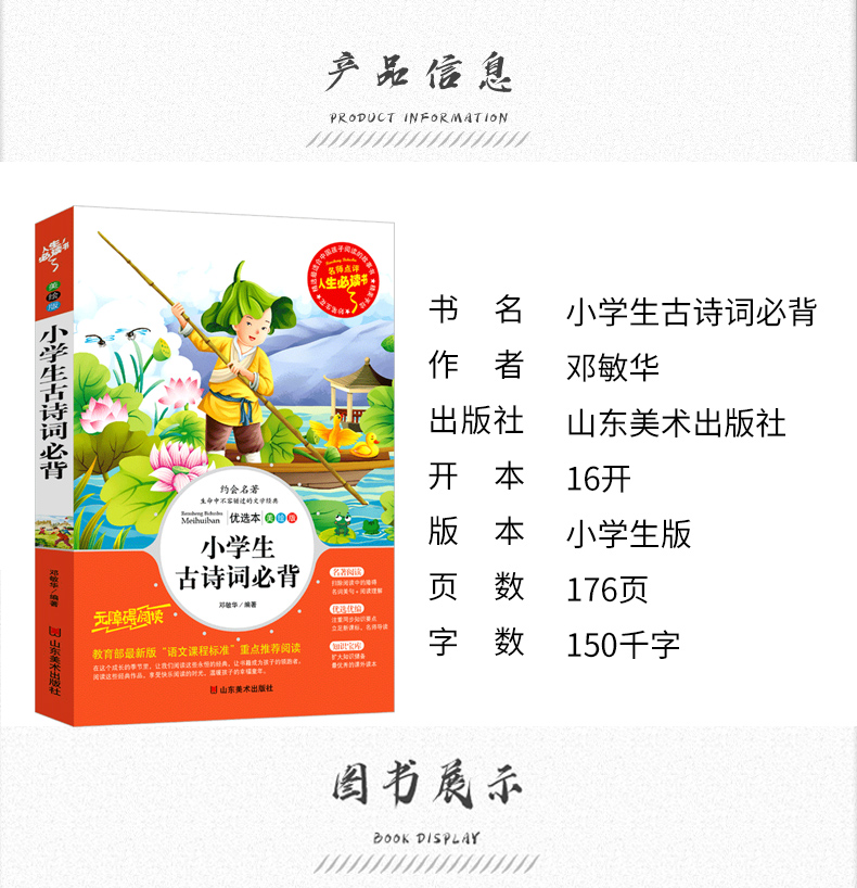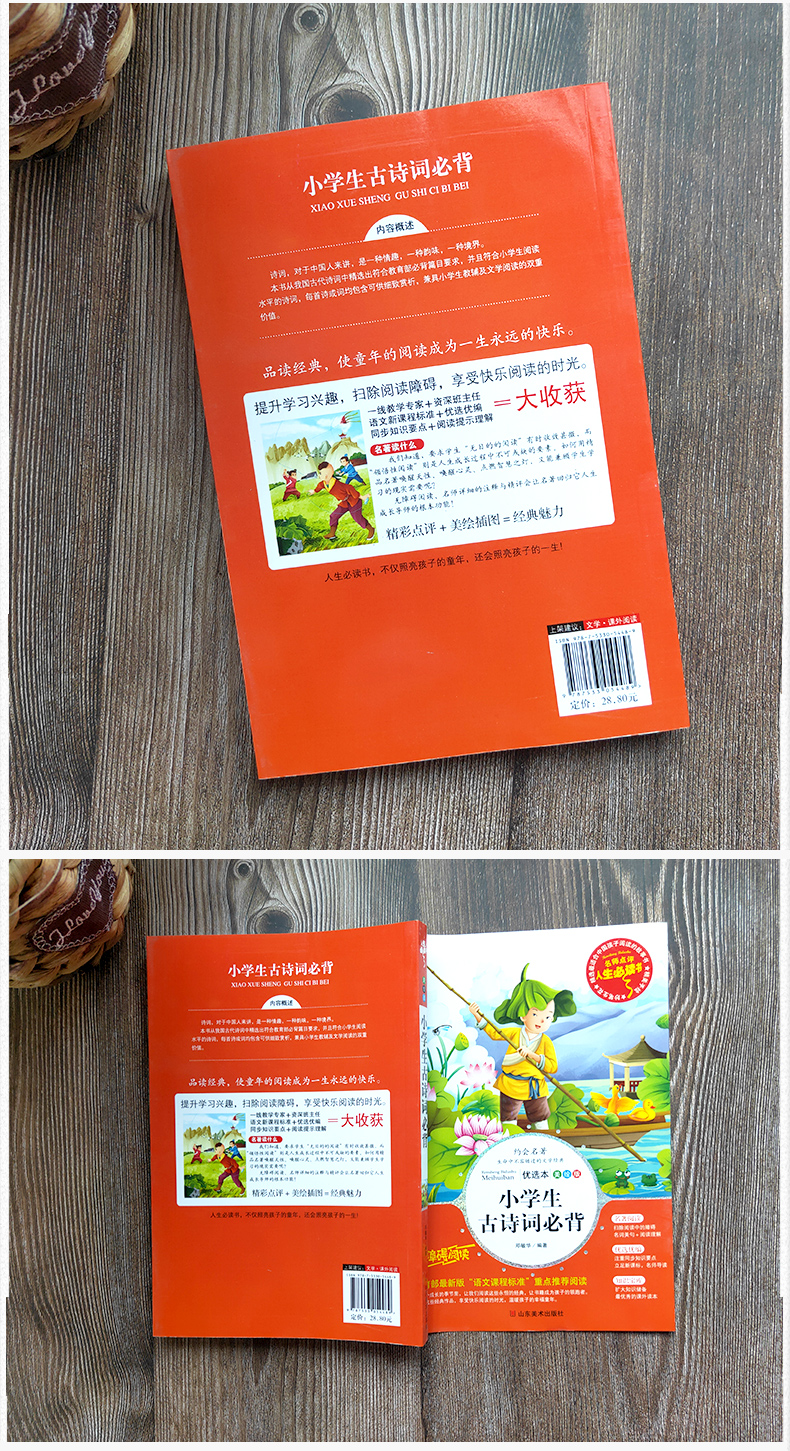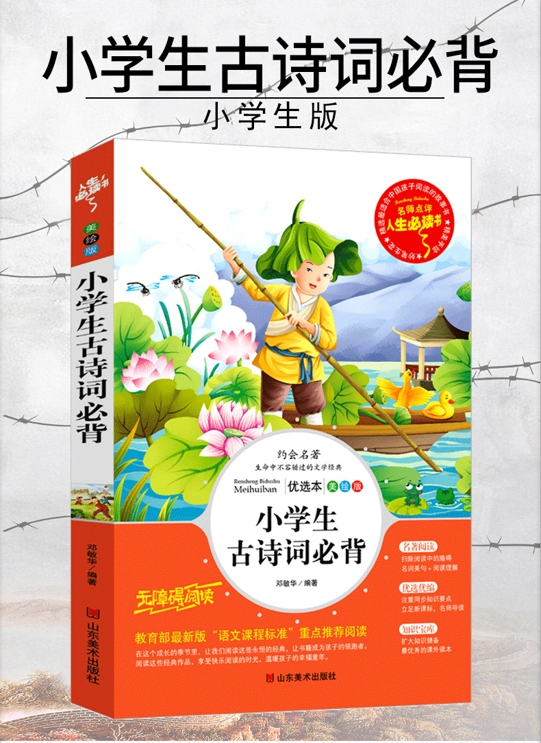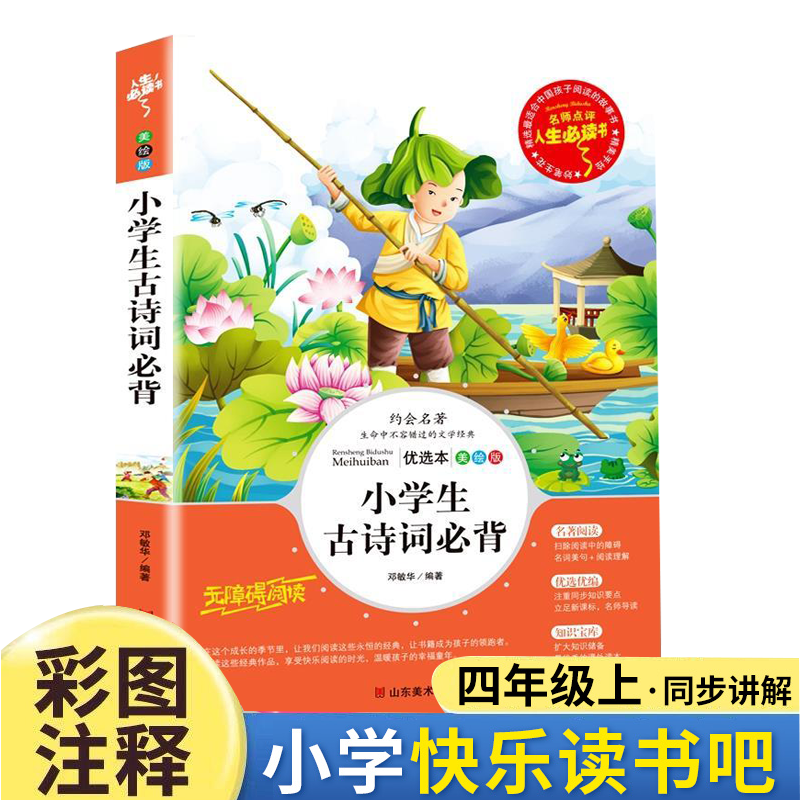 商品名称:人生必读书--小学生古诗词必背 小学一二三四五六年级通用正版诗词积累每周一首名师批注读后感彩图美绘 山东美术出版
