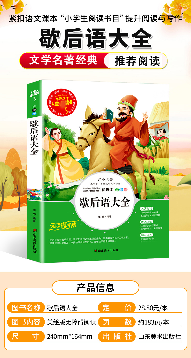 商品名称:人生必读书--歇后语大全 小学生三年级四年级五六年级课外书籍青少年无障碍阅读名著 山东美术出版社