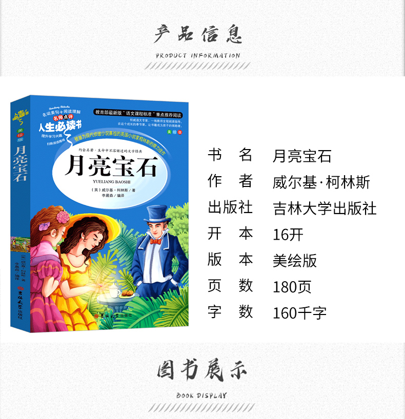 商品名称:人生必读书--月亮宝石 小学生课外书正版三年级四年级五年级六年级侦破小说语彩图美绘版中小学生课外阅读书籍青少年版吉林大学出版社