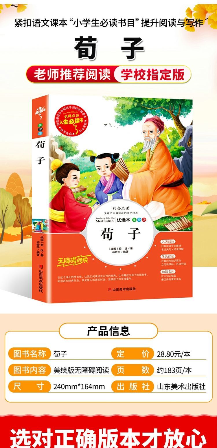 商品名称:人生必读书--荀子 青少年儿童无障碍阅读中国古典文学名著国学经典书籍 小学生三四五六年级课外书籍山东美术出版社