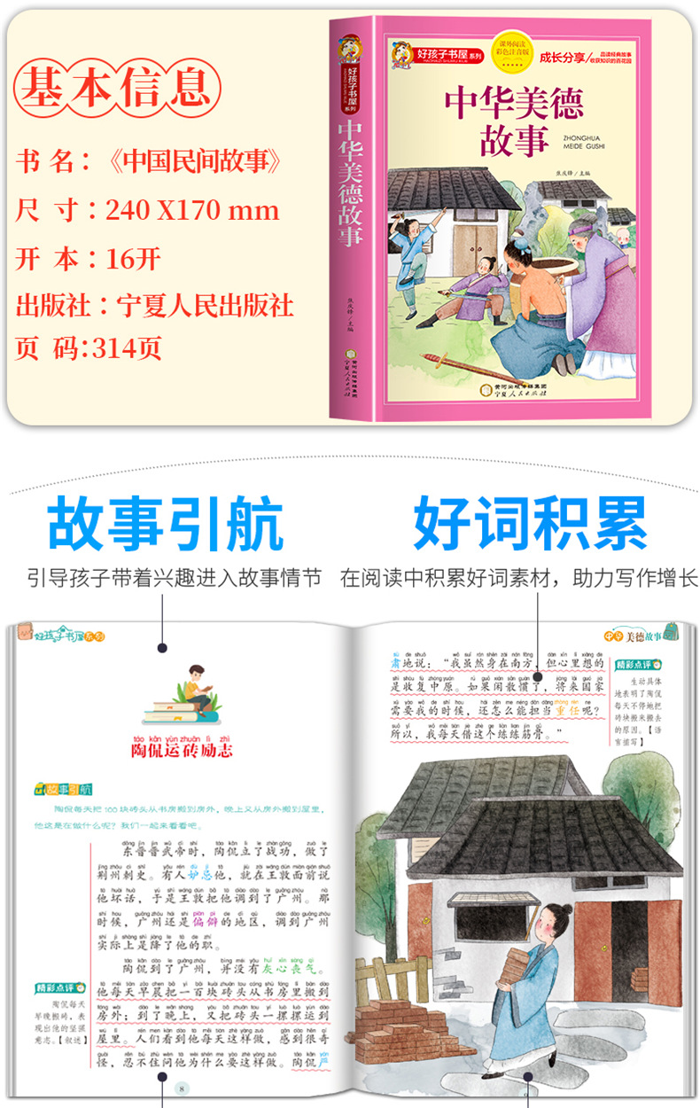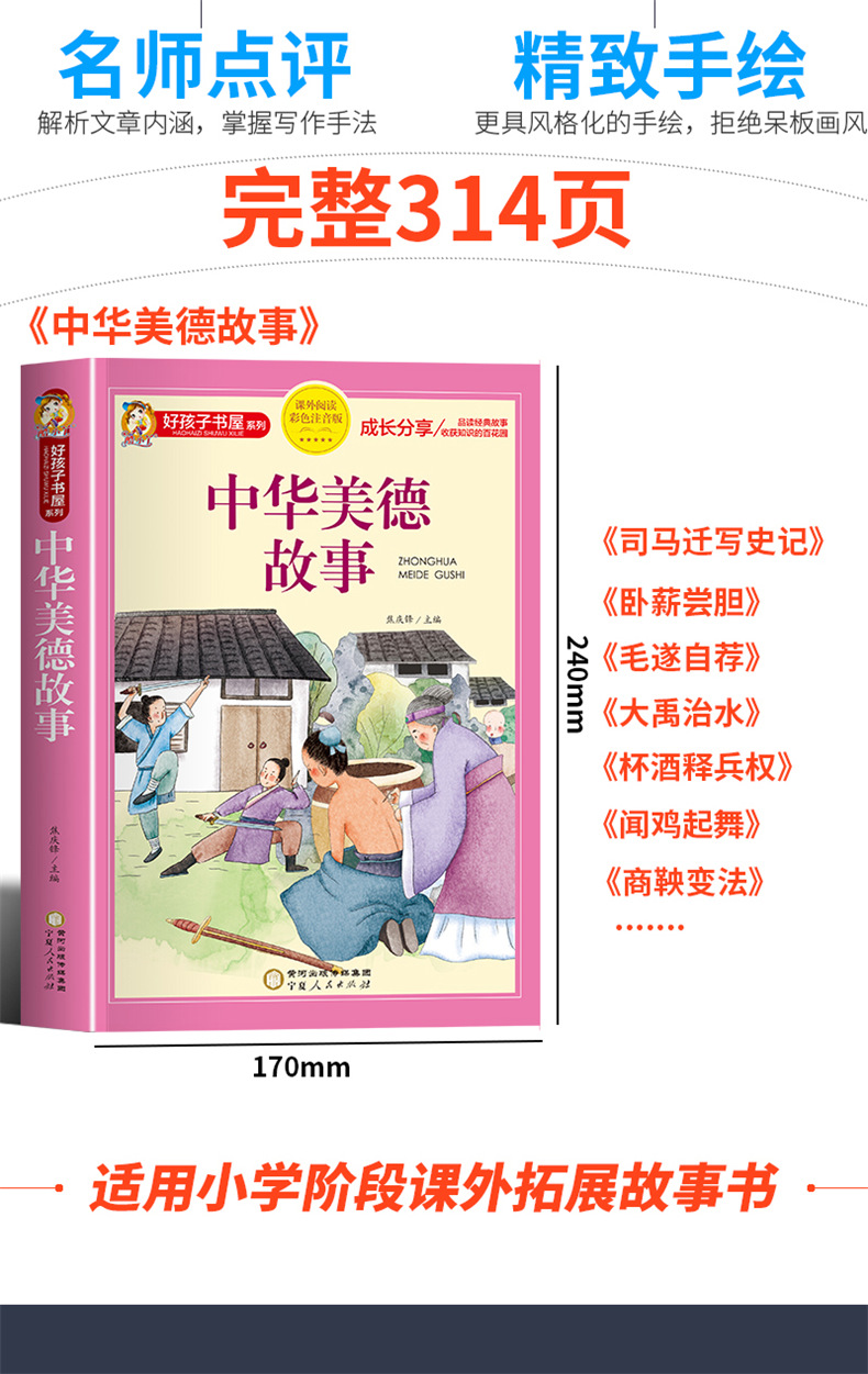 商品名称:好孩子彩图注音-中华美德故事 彩图注音版加厚原著完整版好孩子书屋儿童文学名著故事必小学生一二三四五六年级课外书阅读 宁夏人民出版社