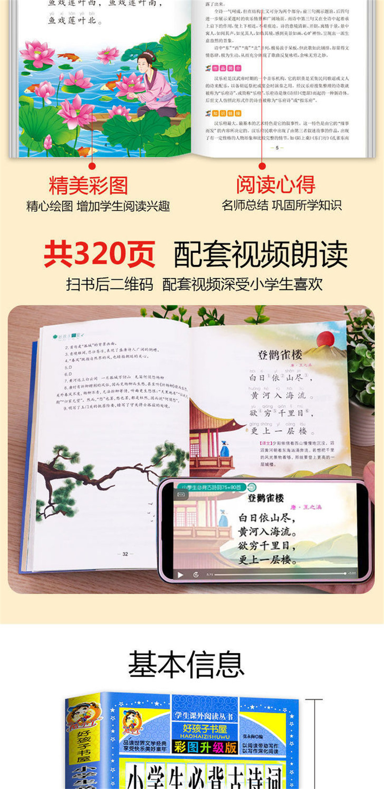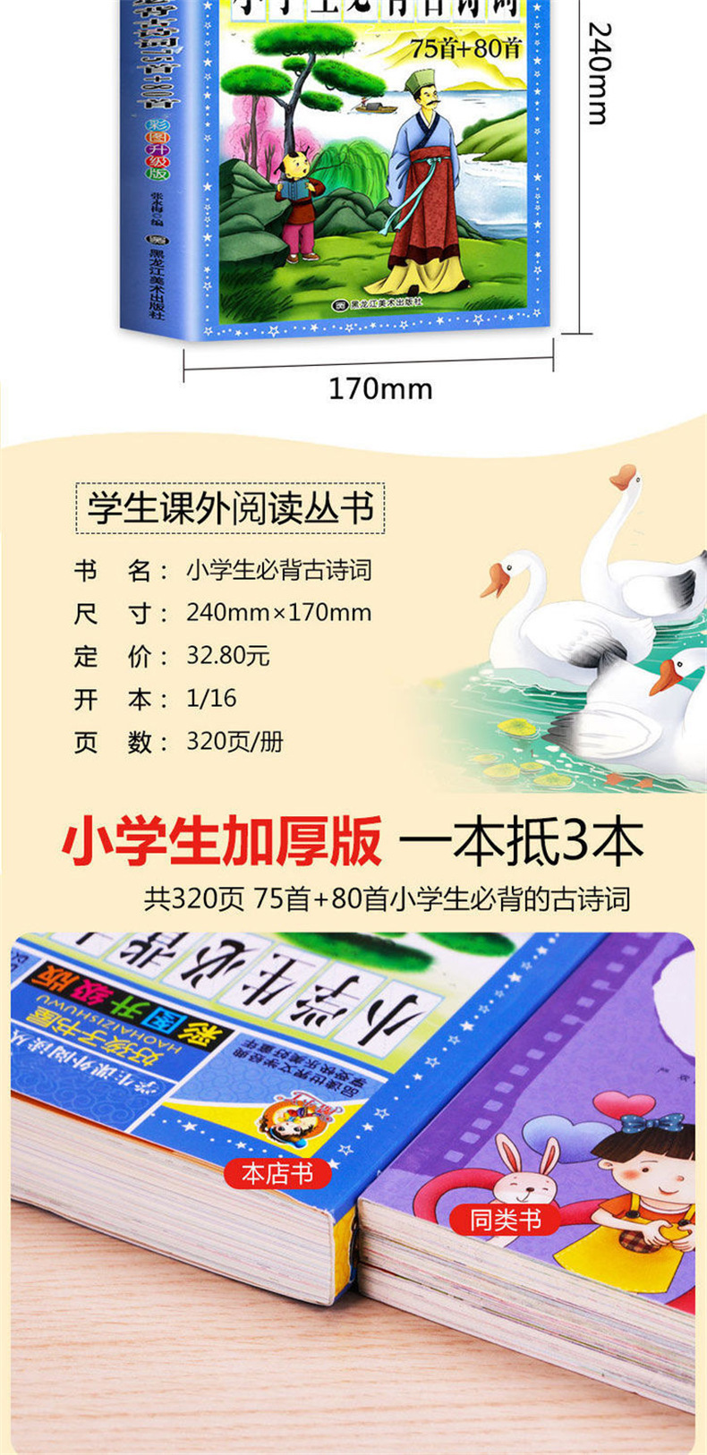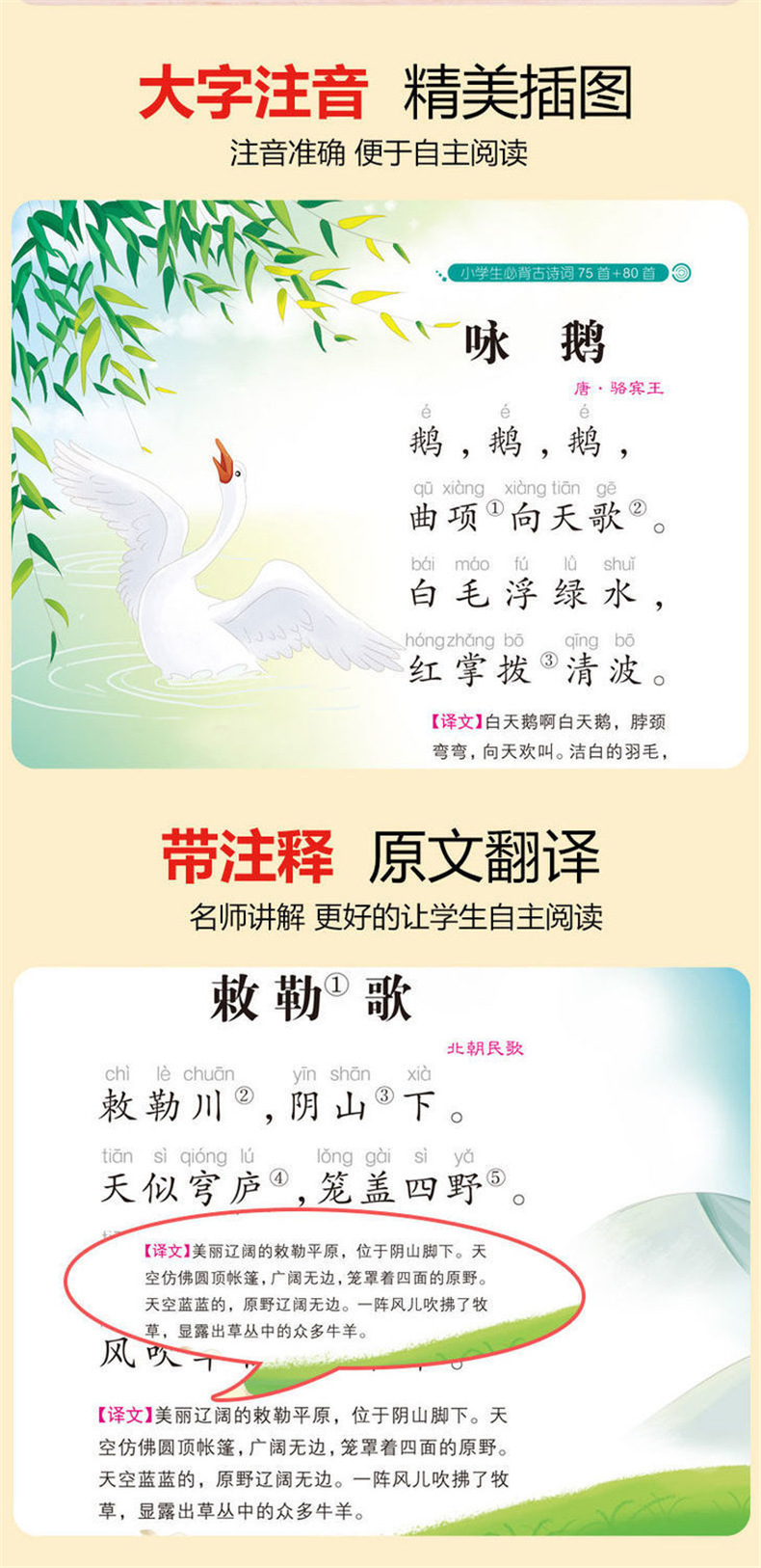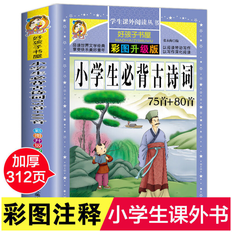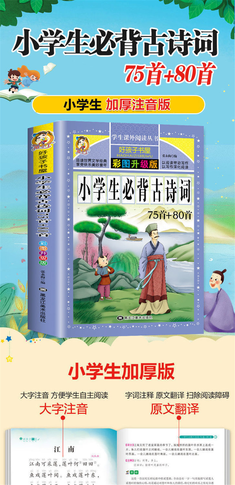 商品名称:彩绘注音版--小学生必背古诗词75首+80首 黑龙江美术出版社