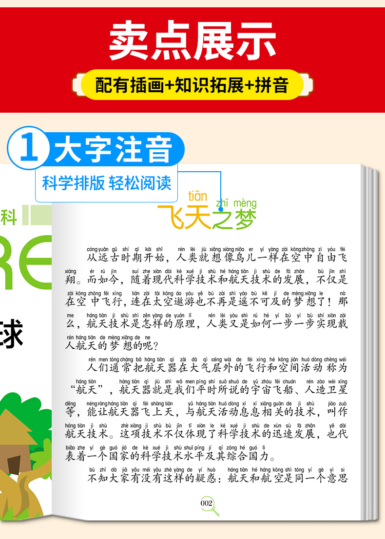 商品名称:人生必读有声朗读版--航空航天小百科 小学生注音版一二三年级课外书儿童十万个为什么科普书籍 山东美术出版社