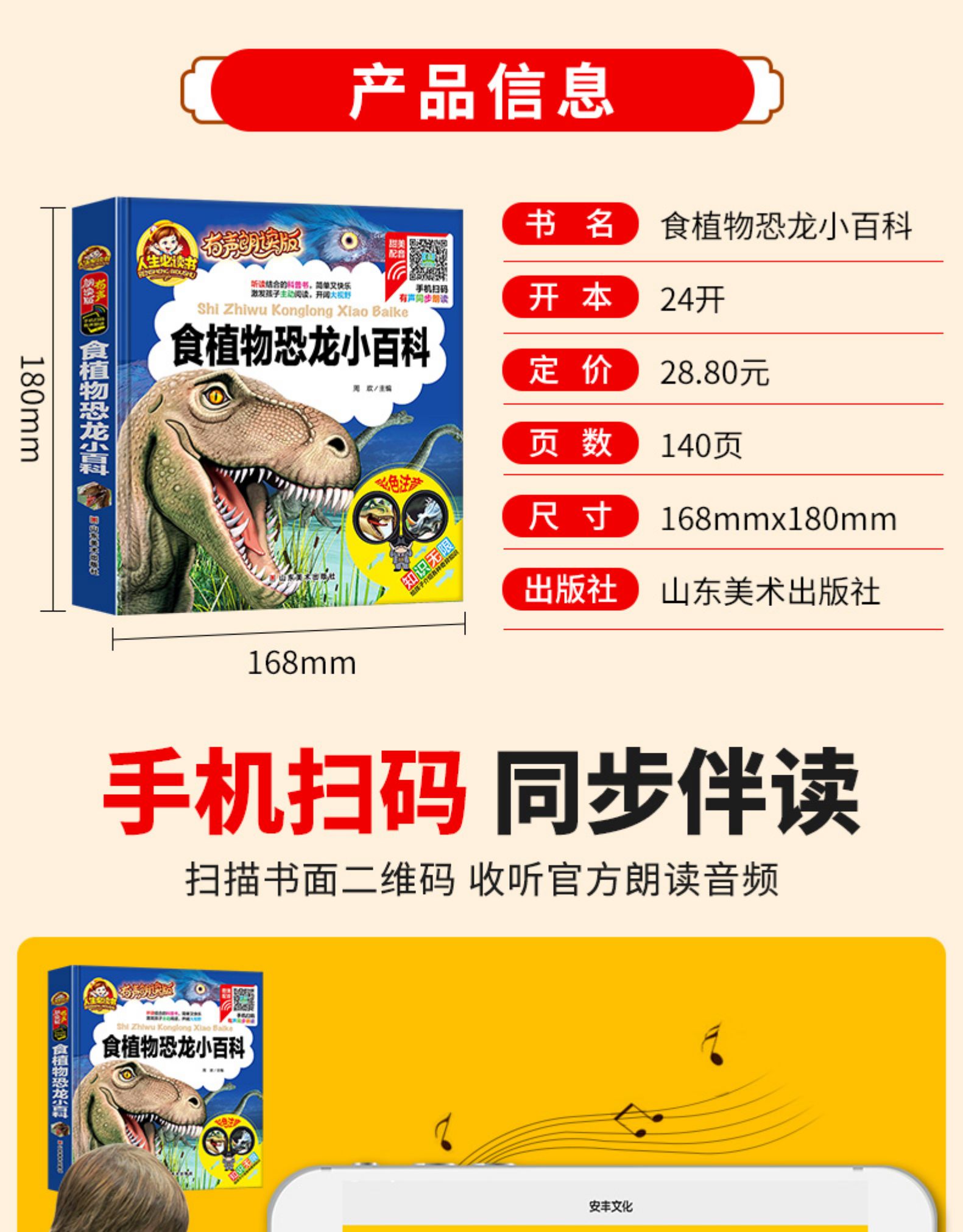 商品名称:人生必读有声朗读版--食植物恐龙小百科 彩图注音版儿童读物一二年级课外阅读书籍 少儿百科全书十万个为什么科普书籍故事书 山东美术出版社
