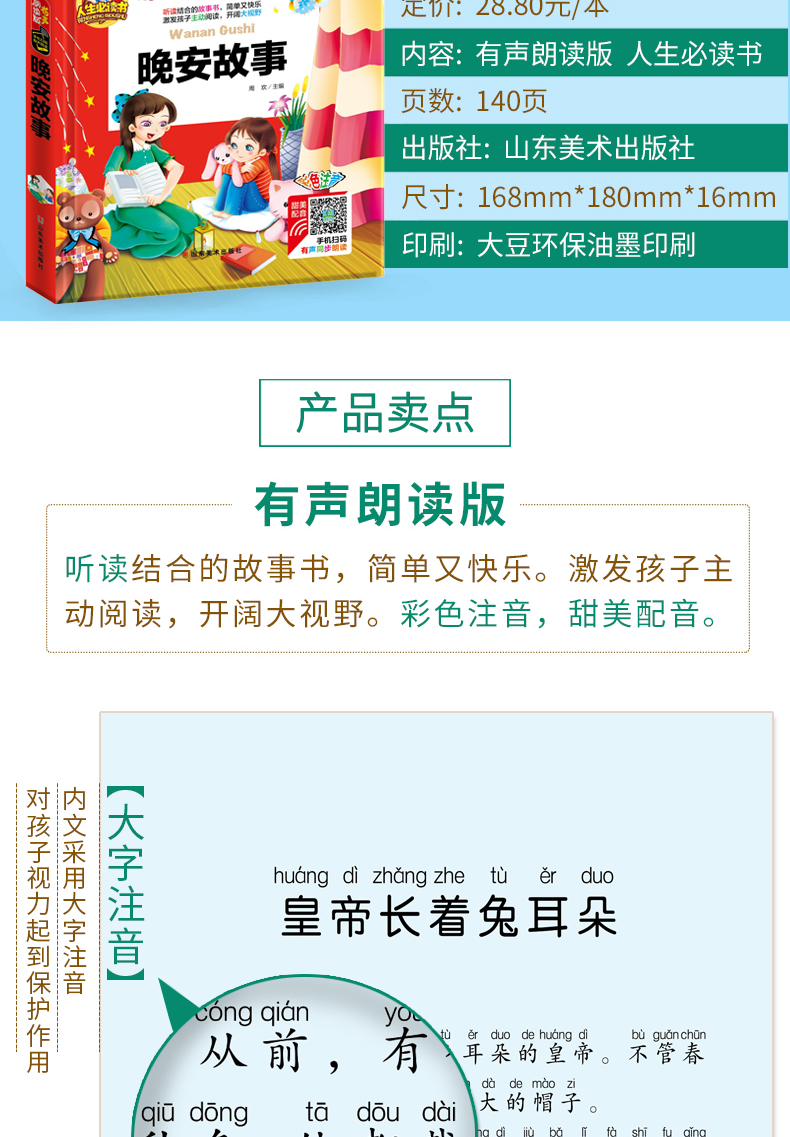 商品名称:人生必读有声朗读版--晚安故事 早教书籍爸爸妈妈讲故事绘本0-1-2-6岁宝宝启蒙读物带拼音集注音版幼儿园小孩童话大王 山东美术出版社