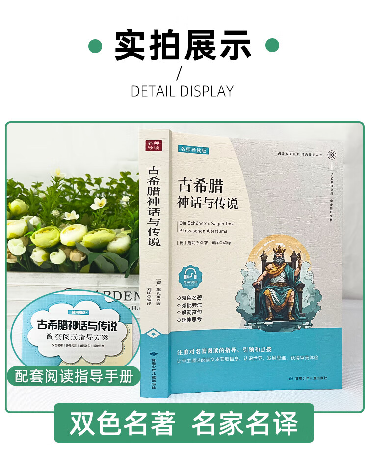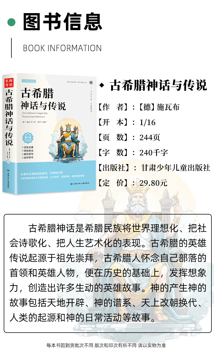商品名称:古希腊神话与传说 双色 附赠手册四年级上 6-12岁中小学生课外读物 青少年课外名著阅读 文学经典导读 课外书故事书 小学生课外阅读书籍 甘肃少年儿童出版社