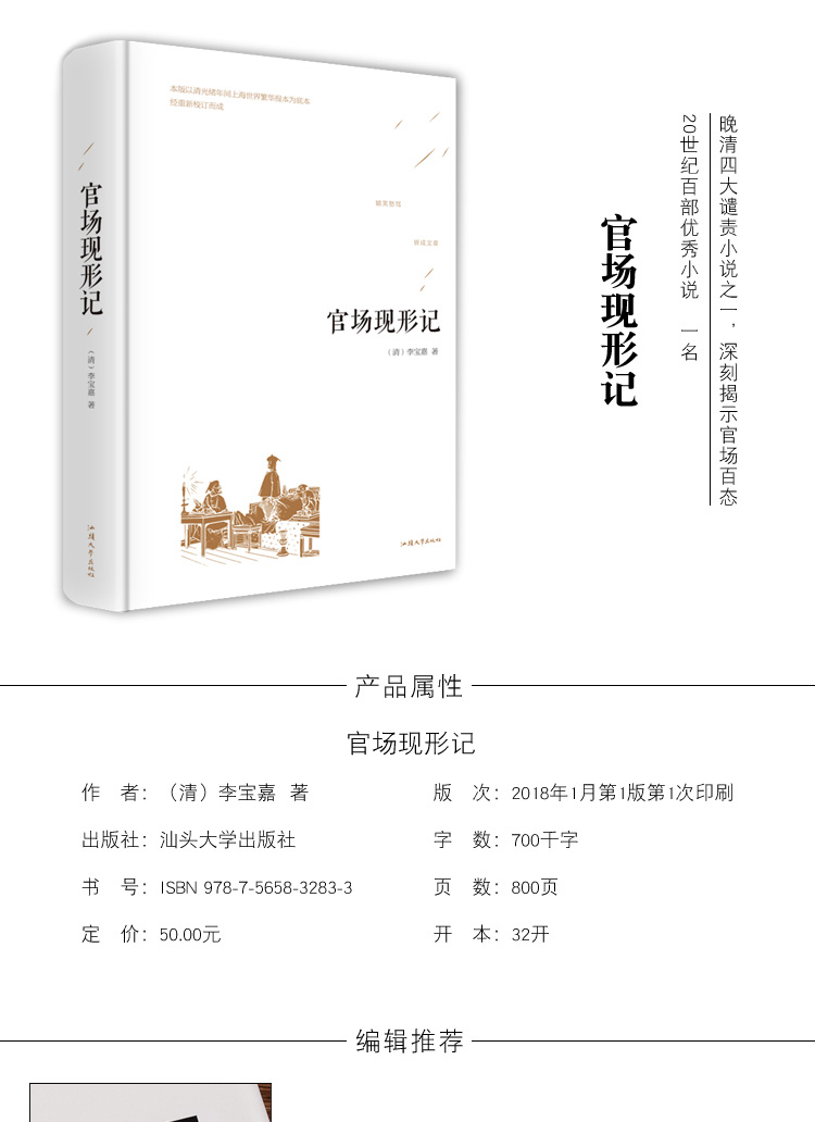 商品名称:官场现形记 晚清四大谴责小说 二十年目睹之怪现状中国历史 初中生高中课外阅读世界名著经典文学成人书籍畅销书排行榜 汕头大学出版社