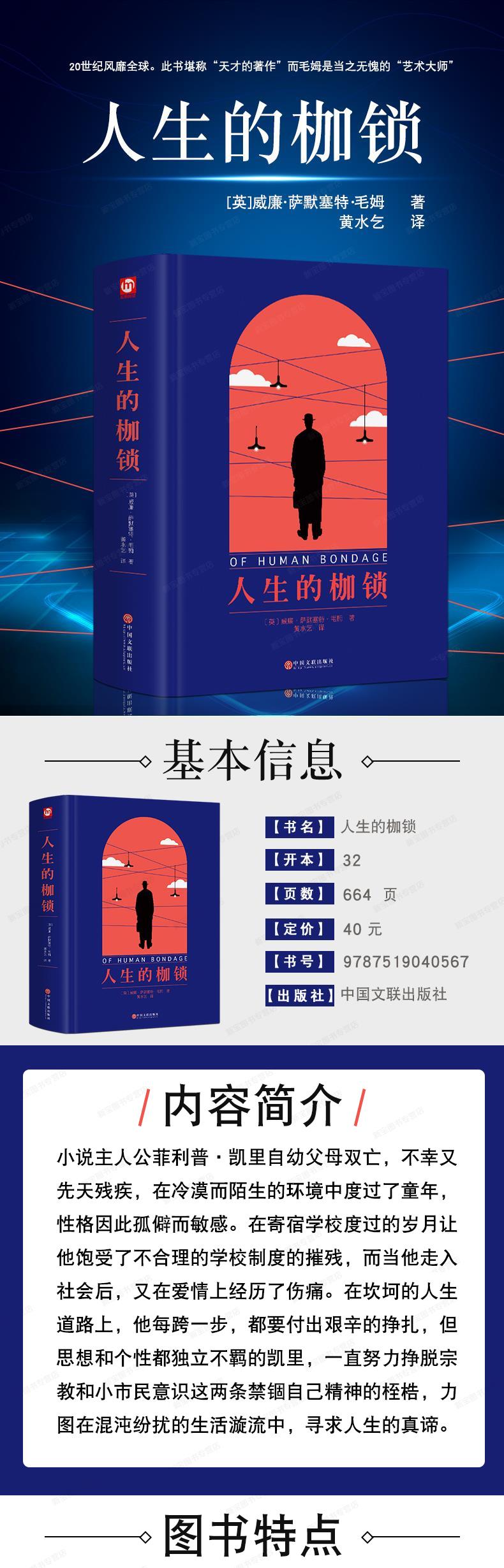商品名称:人生的枷锁 英 毛姆 著 (又名人性的枷锁)人民文学名著中国文联出版社