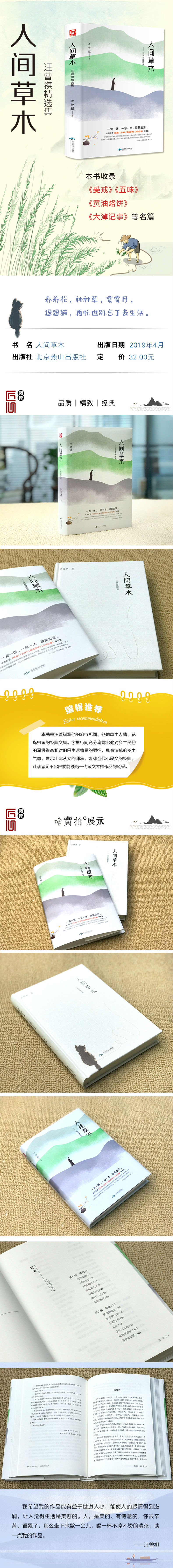 商品名称:人间草木:汪曾祺精选集 养养花,种神草,賞賞月,逗退猫,再忙也別忘了去生活 北京燕山出版社