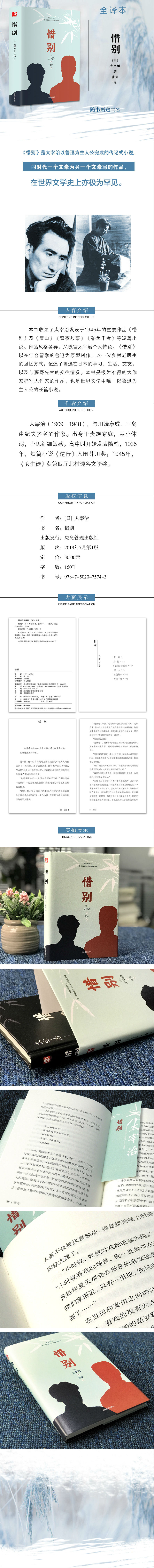 商品名称:惜别(日)正版书籍 太宰治著 日本无赖派文学大师惆怅阴郁颓废的毁灭美学的悲情演绎 现当代文学作品日本经典文学书 应急管理出版社