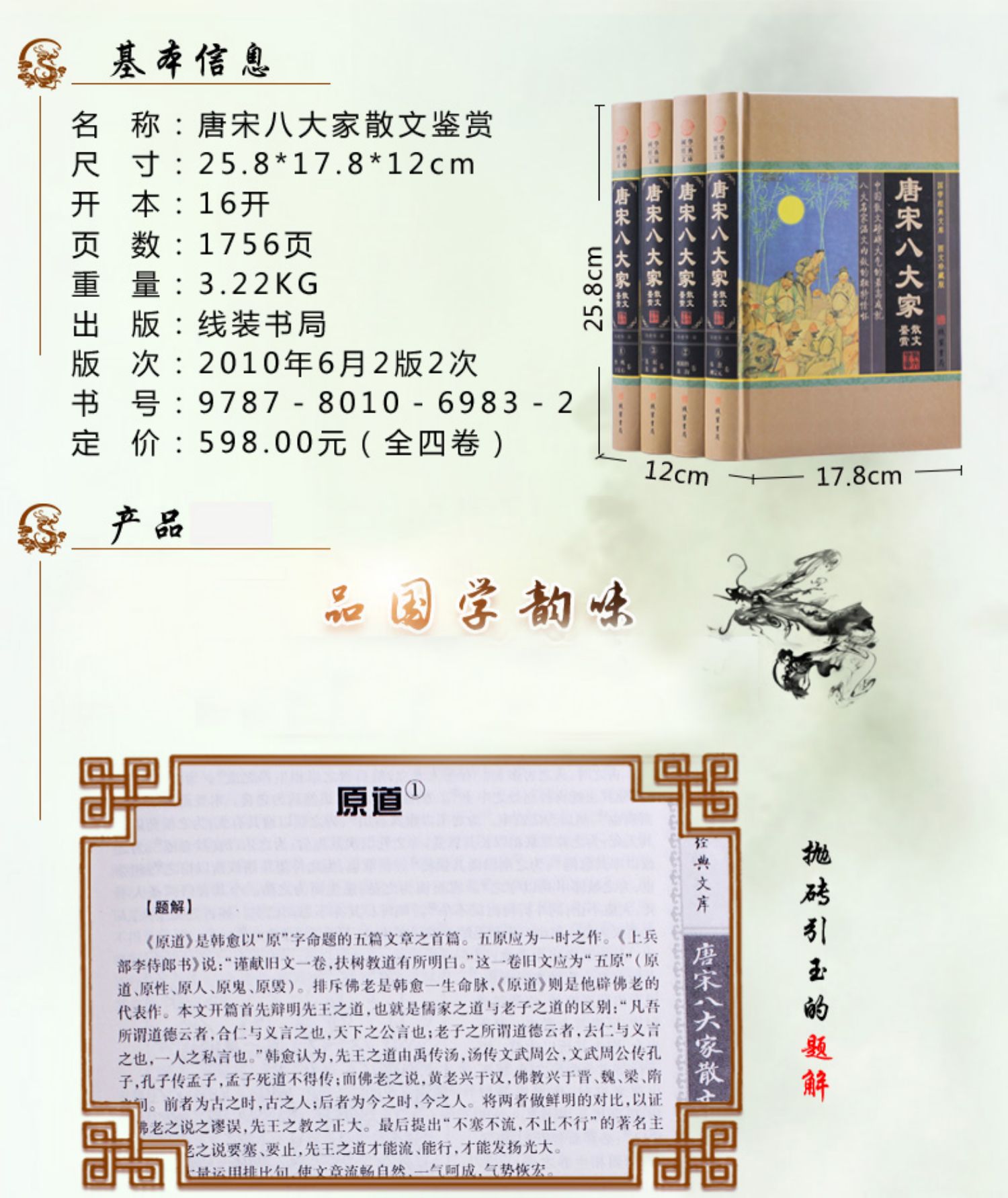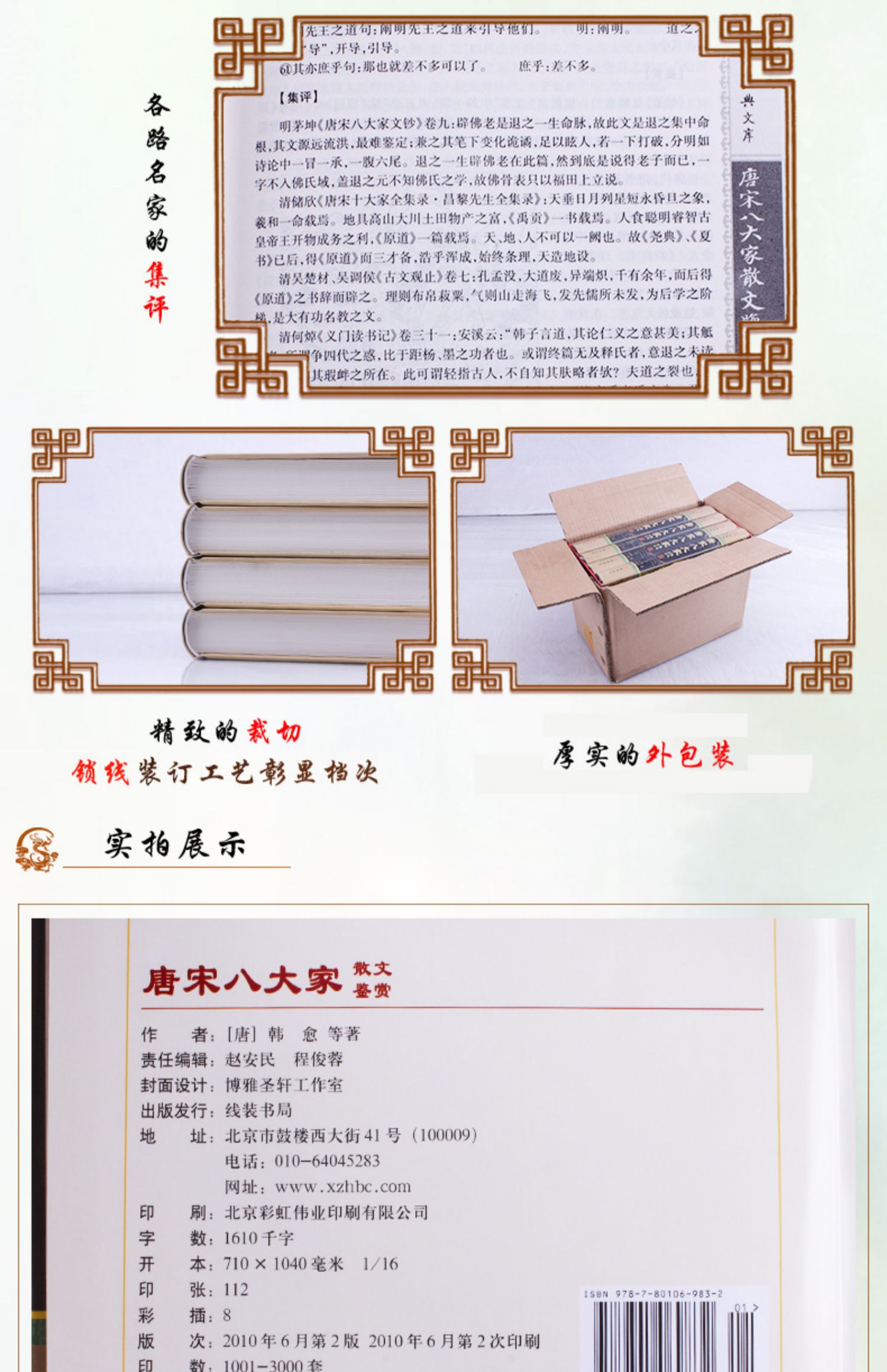 商品名称:唐宋八大家散文鉴赏(小插盒)著正版4册精装珍藏版原文注释赏析 中国古诗词唐宋八大家散文鉴赏古诗词鉴赏唐诗宋词鉴赏唐宋八大家散文鉴赏 线装书局