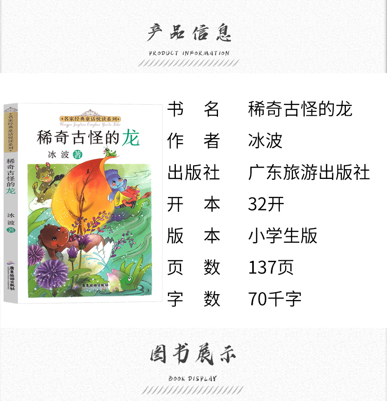 商品名称:稀奇古怪的龙 冰波童话系列书一年级二年级三四五六年级精选小学生课外书抒情书籍阅读彩图系列少儿读物儿童故事书 广东旅游出版社