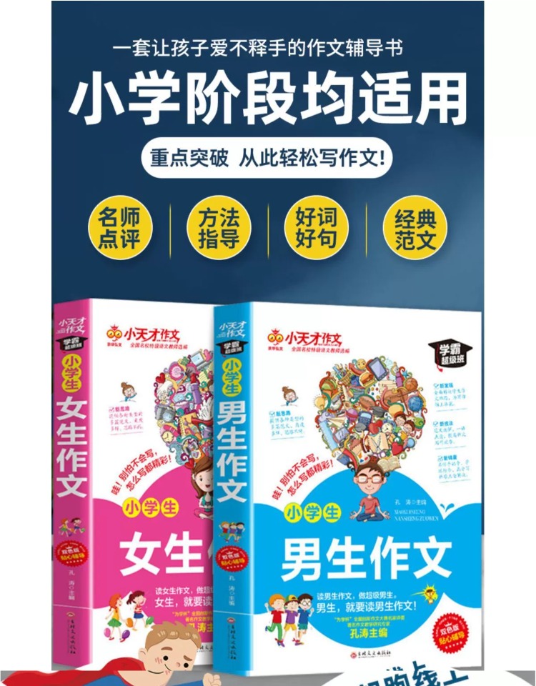 商品名称:小天才作文 小学生男生作文小学生女生作文 全套2册作文辅导书籍通用专注男生女生小学分类满分作文全国作文选精五感法写作文 吉林文史出版社