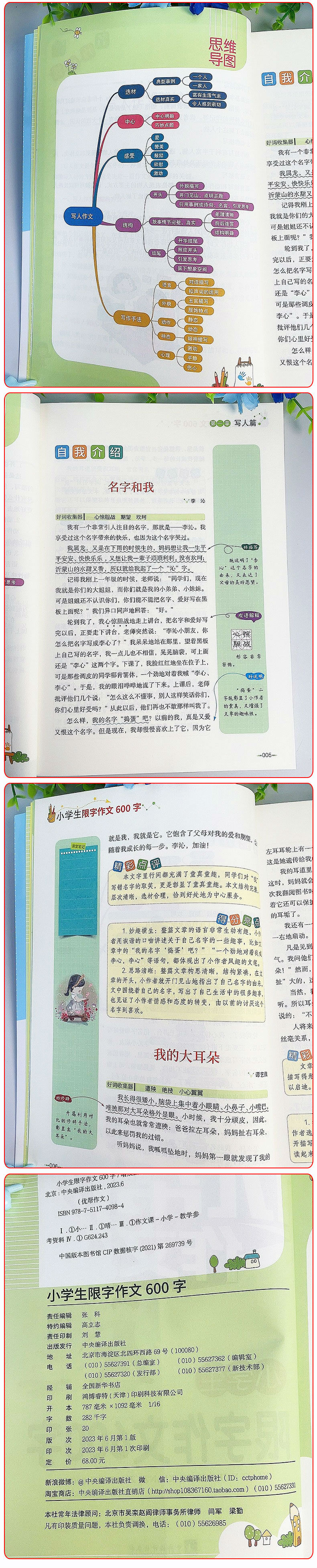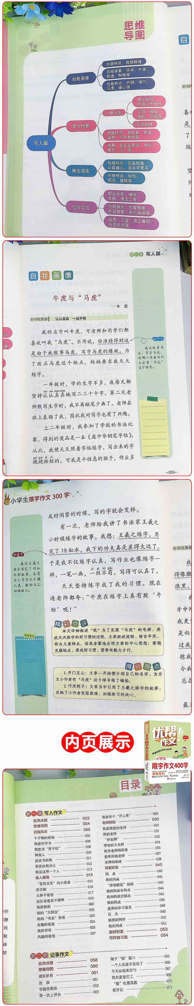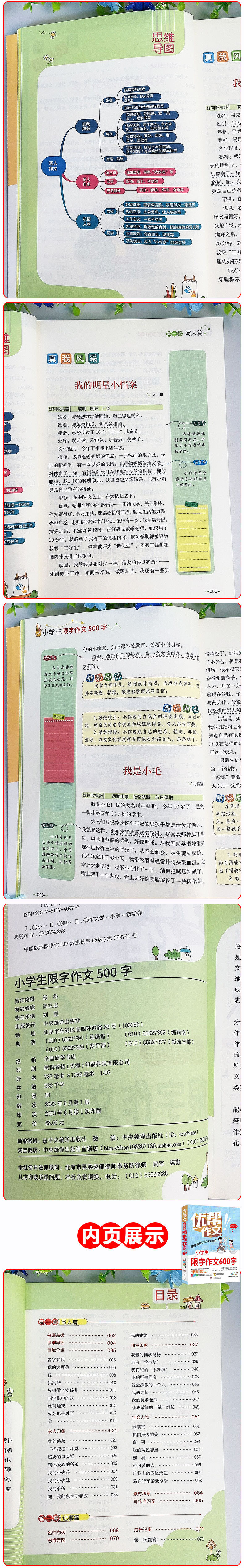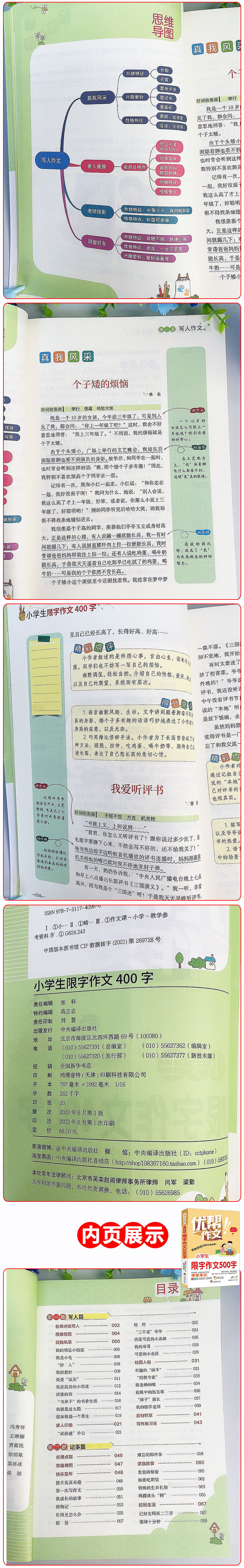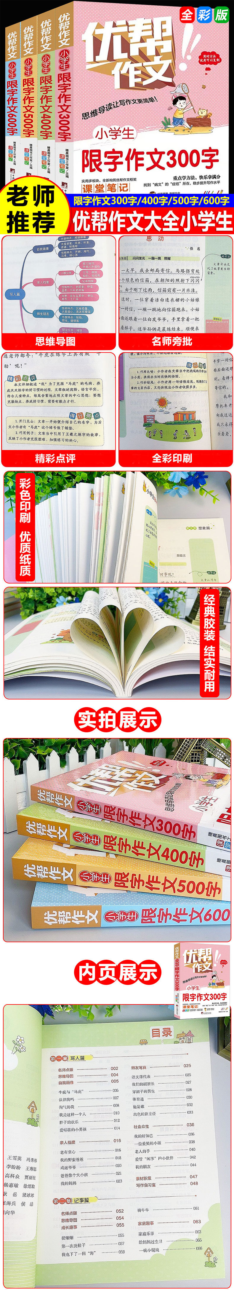 商品名称:小学生 限字作文300字 限字作文400字 限字作文500字 限字作文600字 4全套册 全彩版3-6年级作文素材小学生三至六年级作文写作技巧名师点评名师旁批成语解释 中央编译出版社