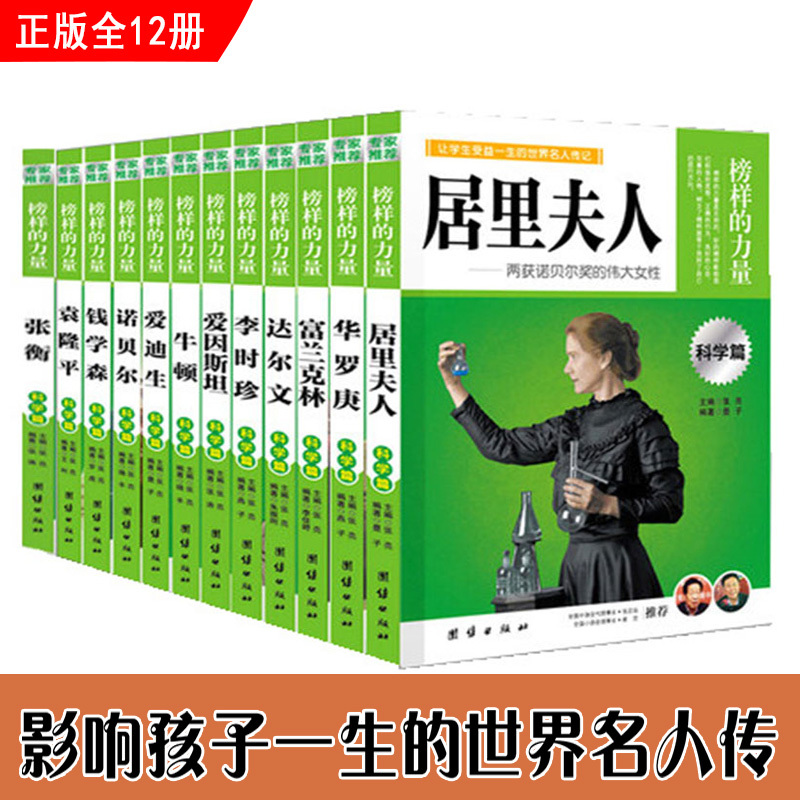 榜样的力量 科学篇全套12册 牛顿 爱迪生 诺贝尔 钱学森 袁隆平 张衡 居里夫人 爱因斯坦 李时珍 达尔文 富兰克林 华罗庚让学生受益一生的世界名人传记人物传记书籍 团结出版社
