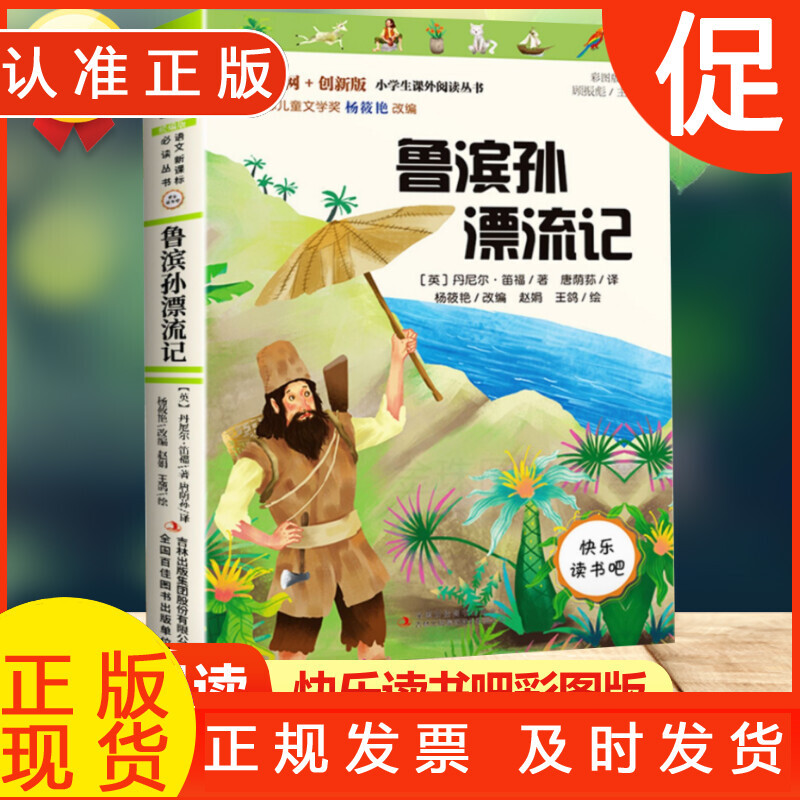 商品名称:阅读经典文学名著:鲁滨孙漂流记 六年级下册 快乐读书吧彩图版同步阅读小学生四五六年级课外书儿童文学世界读 青岛出版社