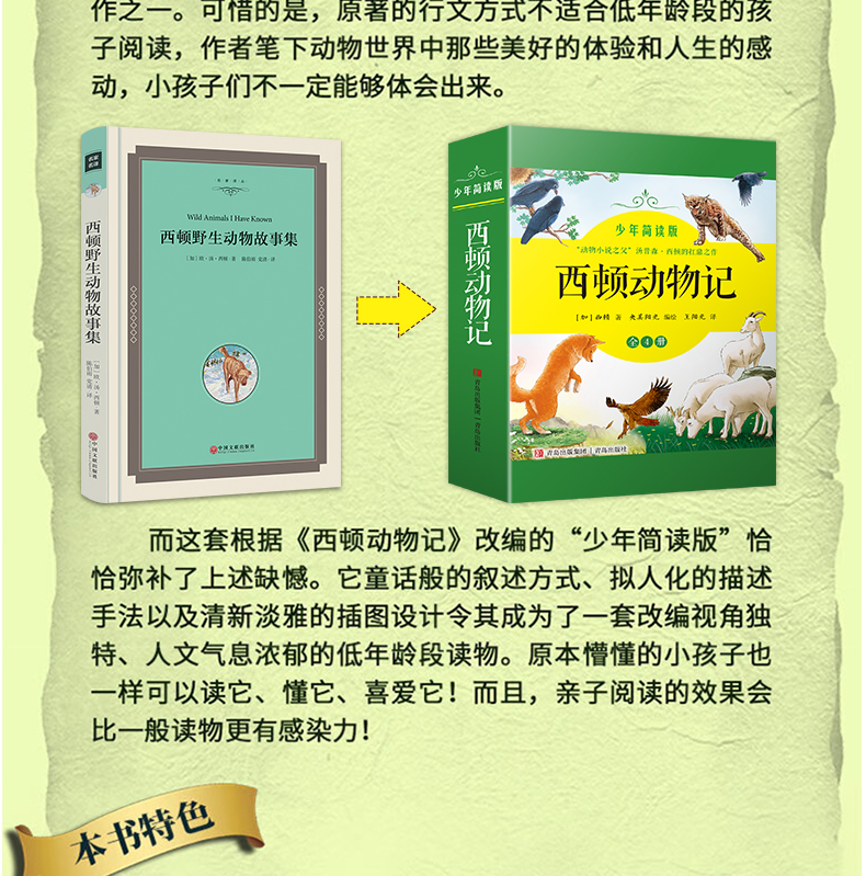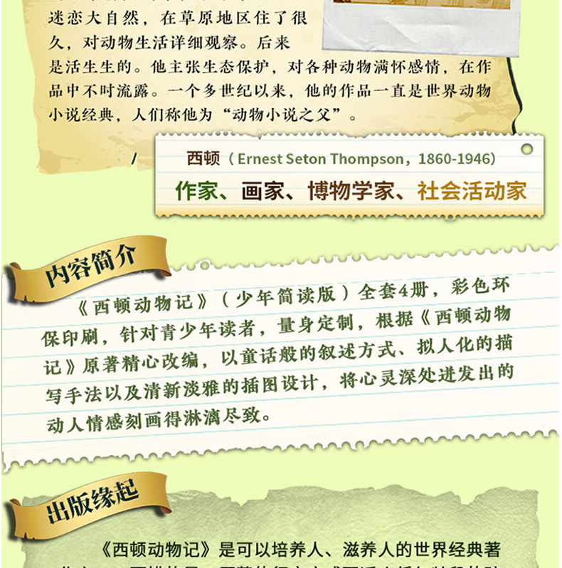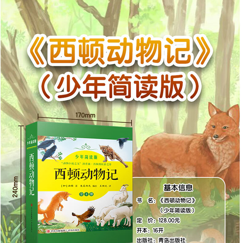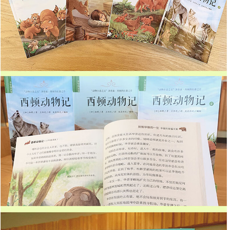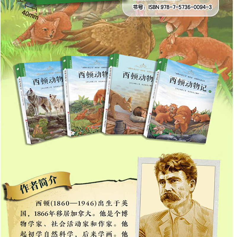 商品名称:阅读经典文学名著:西顿动物记 全4册 一二三四五六年级课外阅读书籍 青岛出版社