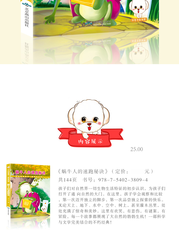 商品名称:少儿科普童话(原创美绘版)--蜗牛人的速跑秘诀 北京燕山出版社