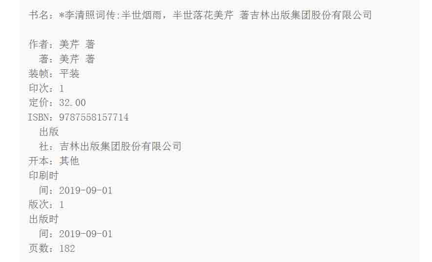 商品名称:(新平装)半世烟雨,半世落花-李清照词传 吉林出版集团股份有限公司
