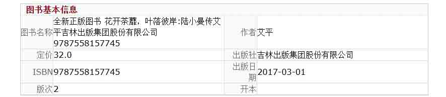 商品名称:(新平装)花开茶靡,叶落彼岸-陆小曼传 文学家 吉林出版集团股份有限公司