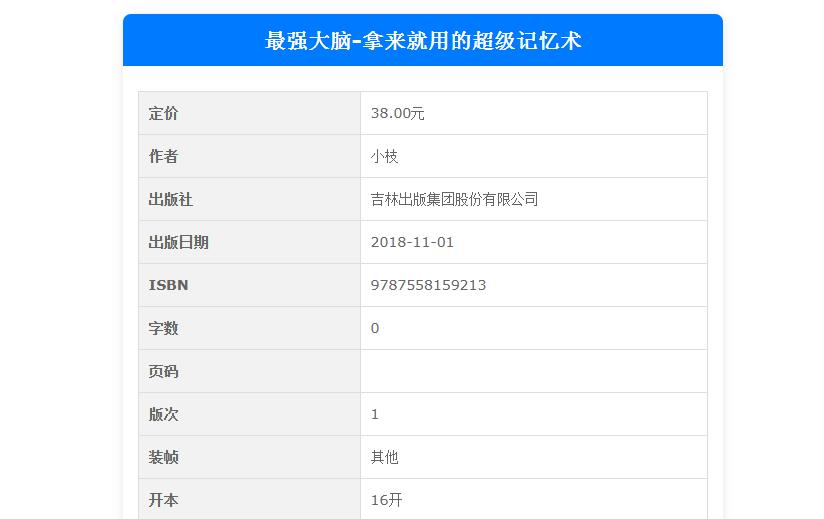 商品名称:最强大脑-拿来就用的超级记忆术 小枝 吉林出版集团股份有限公司