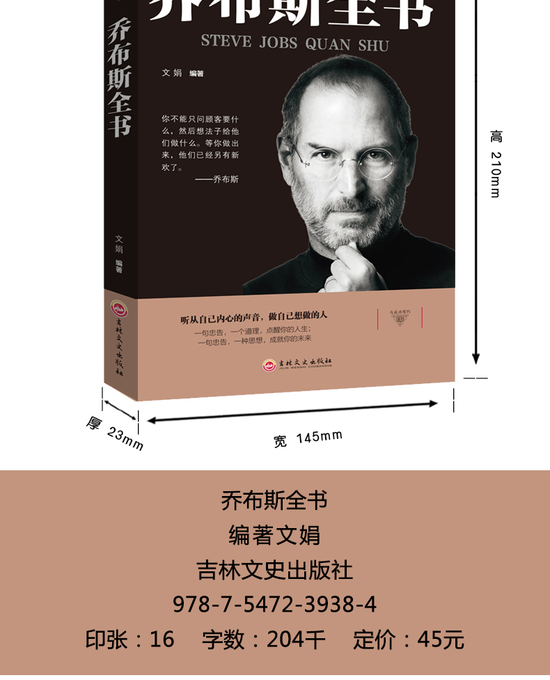 商品名称:与成功有约-乔布斯全书 社科成功励志书籍 青少年版世界中外人物自传 传记书籍 公司经营管理书 吉林文史出版社
