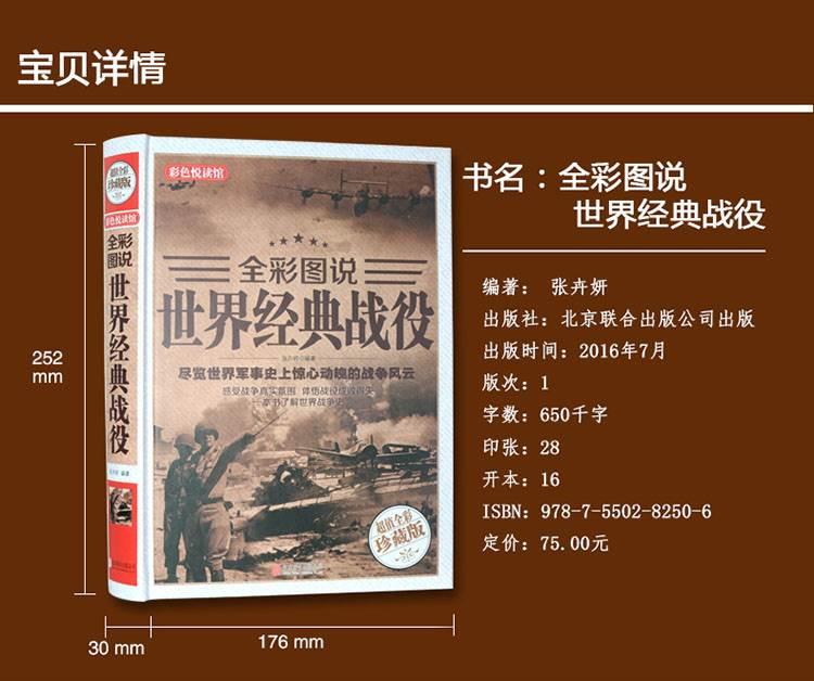 商品名称:全彩图说二战全史 全彩图说世界经典战役彩图文版精装正版 世界军事史历史知识书籍 汇集从公元前15世纪至当代近300场经典战役 一战二战世界战争风云 北京联合出版公司