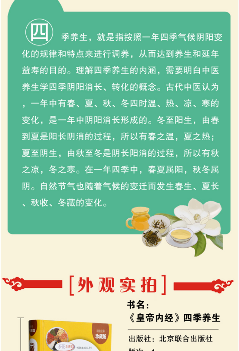 商品名称:黄帝内经 四季养生全书 彩图精装版中医养生智慧密码营养学教材 健身食物药物知识生活饮食健康保健家庭医生 北京联合出版公司