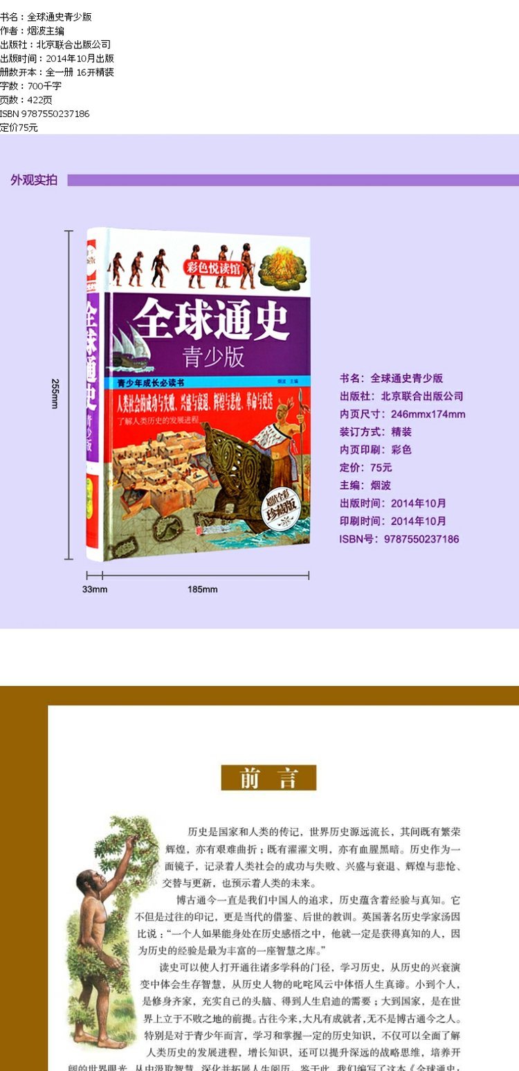 商品名称:正版 全球通史青少版彩图版精装 北京联合出版公司 欧洲史世界通史上下五千年历史知识书籍 青少年历史知识学生课外读物西方文明史