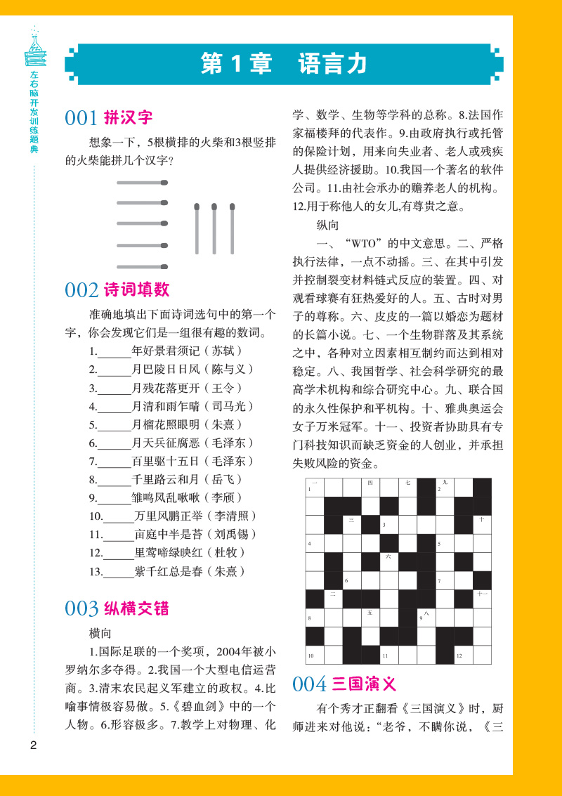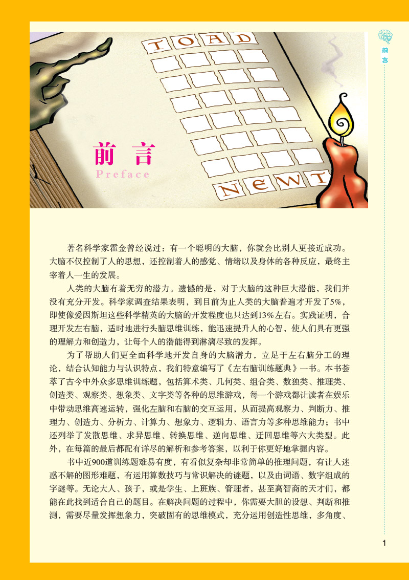 正版 左右脑开发训练题典 彩图版精装 北京联合出版公司 智力游戏青少年中小学生智力开发思维训练书籍