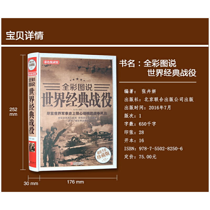 商品名称:全彩图说 世界经典战役 彩图文版精装正版 世界军事史历史知识书籍 汇集从公元前15世纪至当代近300场经典战役 一战二战世界战争风云 北京联合出版公司