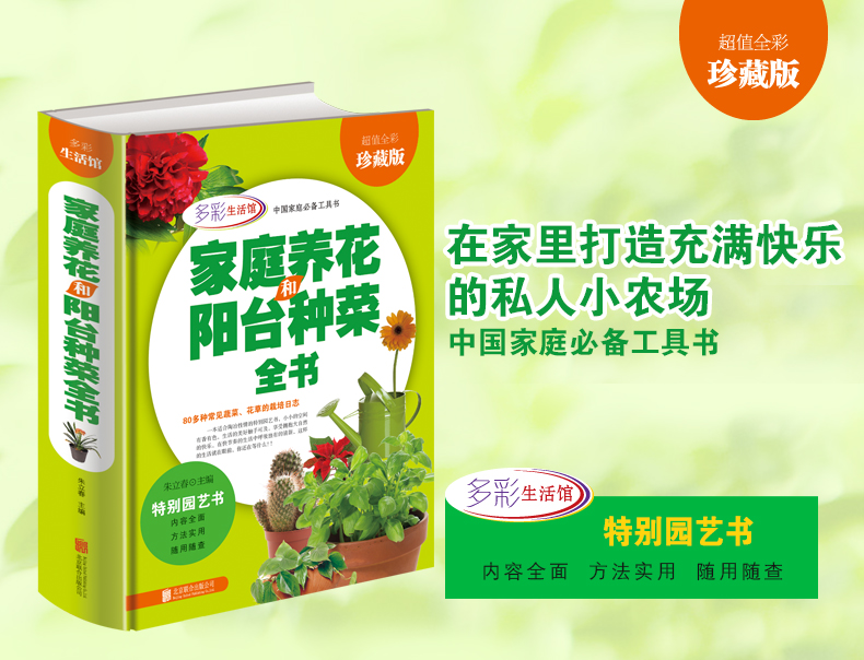 商品名称:家庭养花和阳台种菜全书 精装彩色版 新手四季养花居家健康花草大全园艺乐趣新手养花不败指南绽放的家庭花园菜园书籍 北京联合出版公司