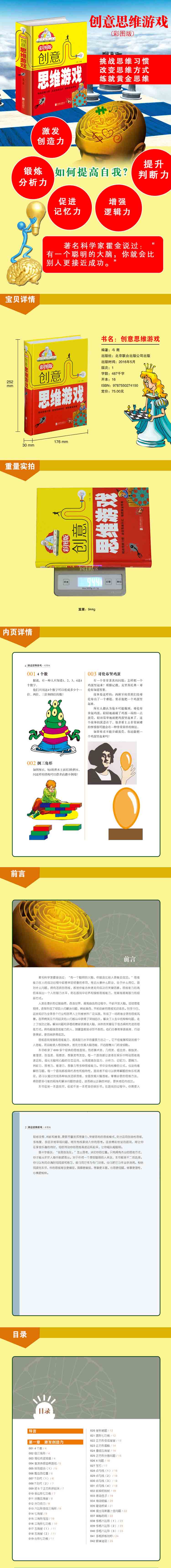 商品名称:彩图版 创意思维游戏(彩色悦读馆)逻辑思维训练 儿童数学思维训练书籍成人左右脑全脑开发智力专注力