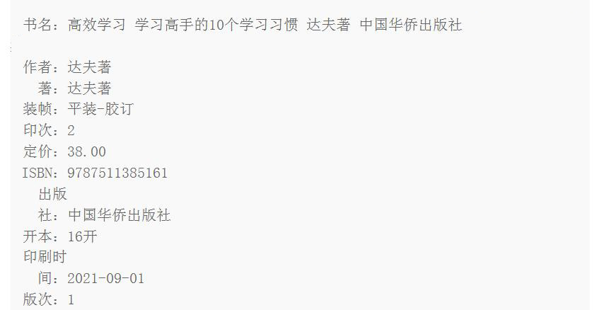 商品名称:高效学习:学习高手的10个学习习惯 达夫 中国华侨出版社