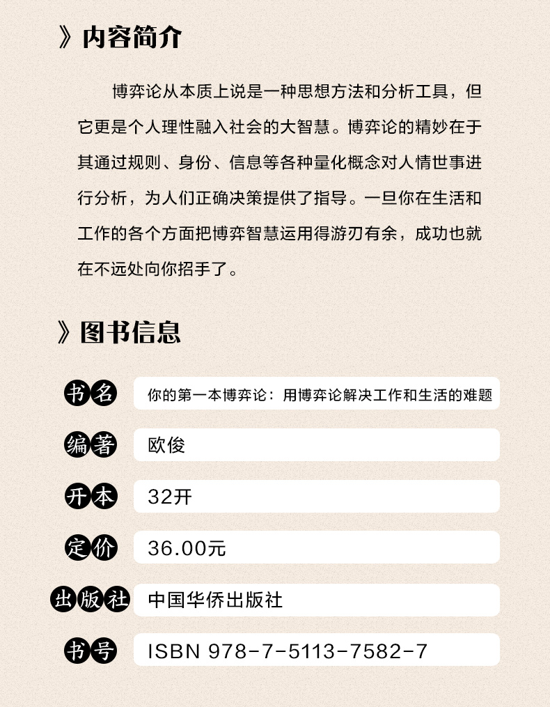 商品名称:你的第一本博弈论:用博弈论解决工作和生活的难题 基础与信息经济学行为经典书籍成功励志心理学书籍原则策略故事书为人处世创业社交技巧职业婚姻规划 中国华侨出版社