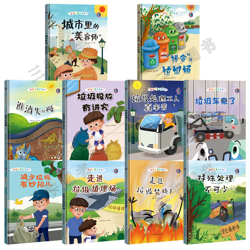 垃圾分类知多少系列主题垃圾处理套装10册/"挑食”的垃圾桶/ 城市里的“美容师”/ 谁消失得慢/ 垃圾投放有讲究/ 垃圾处理工人真辛苦/ 垃圾车来了 /减少垃圾有妙招儿/ 走进垃圾填埋场/ 走进垃圾焚烧厂/ 特殊处理不可少/北方妇女儿童出版