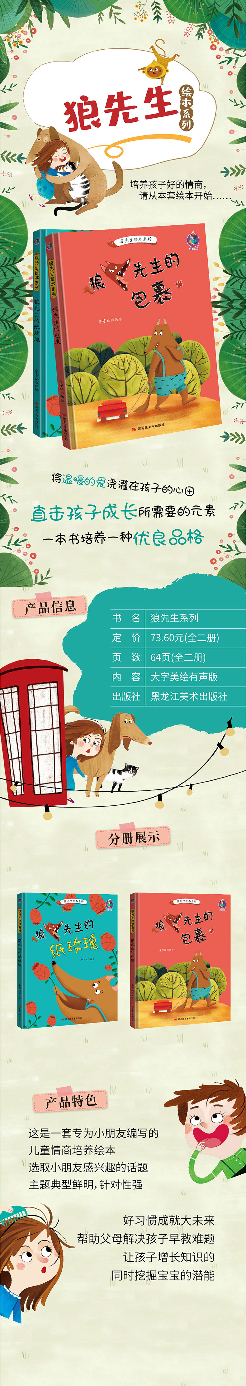 商品名称:狼先生绘本系列2册/狼先生的包裹 /狼先生的纸玫瑰/黑龙江美术出版社/亲子阅读早教启蒙书老师推荐教育情商品格培养成长硬面绘本书