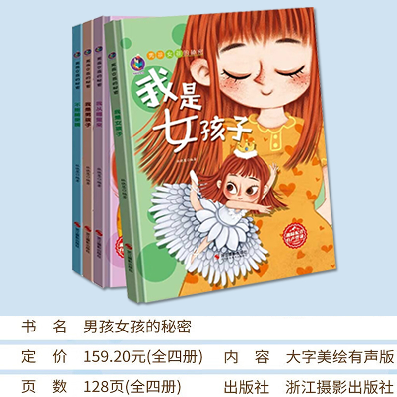 商品名称:男孩女孩的秘密系列4册/不能随便摸 /我从哪里来 /我是男孩子 /我是女孩子/浙江摄影出版社/家庭教育书籍 青春期男孩女孩量身定制成长书籍