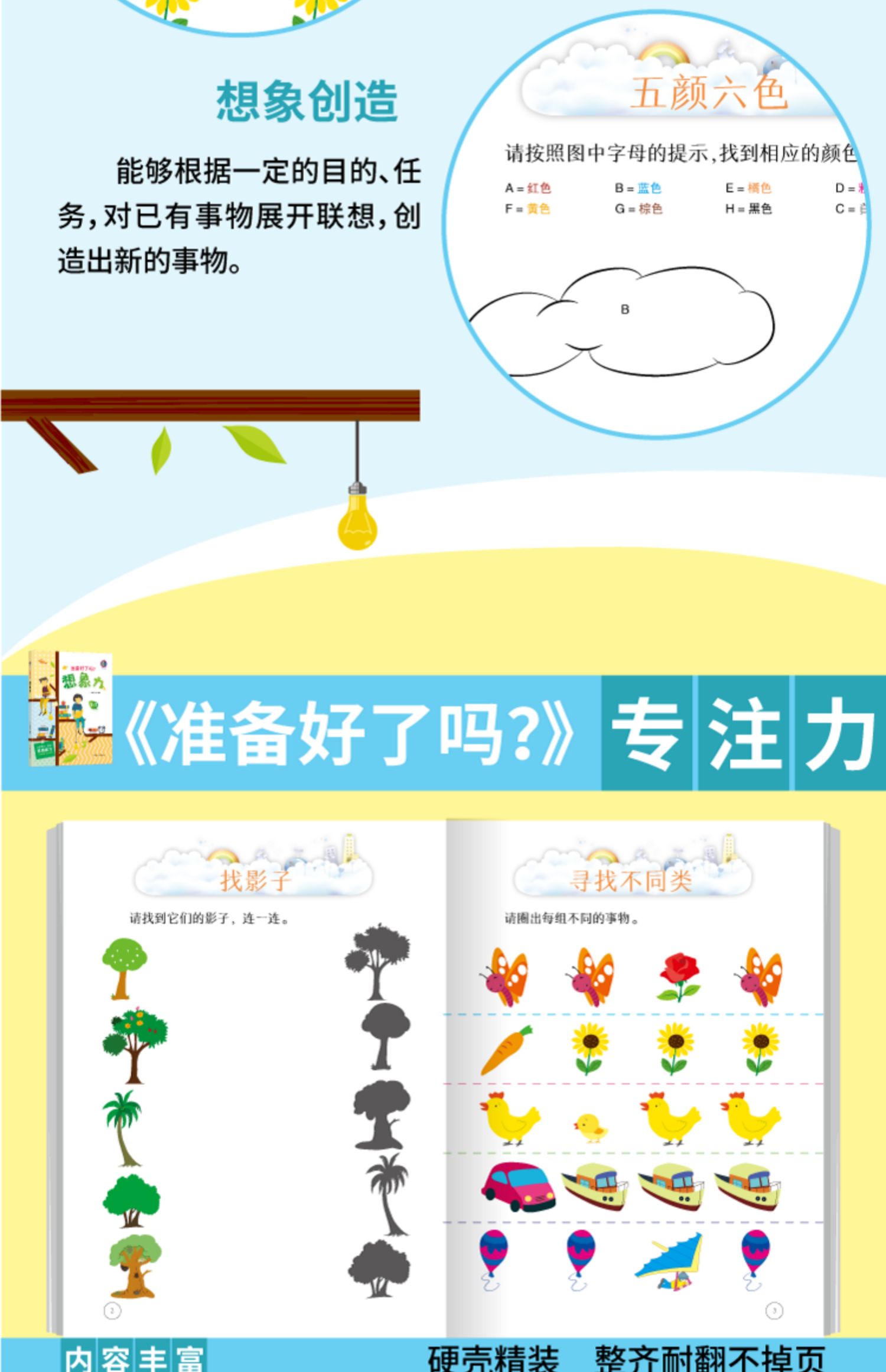 商品名称:全面提升儿童的思维能力系列4册/准备好了吗 记忆力 /准备好了吗 思维能力/ 准备好了吗 想象力/ 准备好了吗 专注力/郑州大学出版社/全面提升儿童逻辑思维能力训练书籍